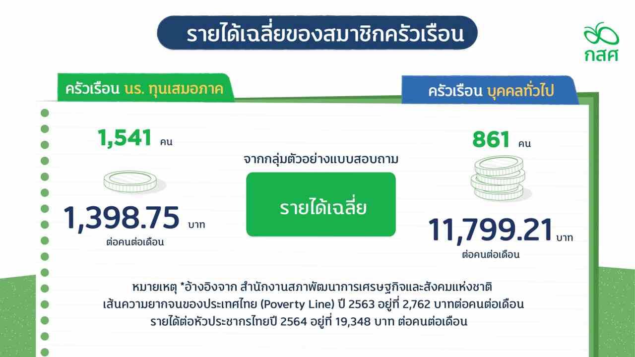 “กสศ. สำรวจสถานะความยากจนของนักเรียนด้วยการอ้างอิงจากเส้นความยากจนของสำนักงานสภาพัฒนาการเศรษฐกิจและสังคมแห่งชาติ ปี 2564 ซึ่งอยู่ที่ 2,762 บาทต่อคนต่อเดือน รายได้ต่อหัวประชากรโดยเฉลี่ย 19,348 บาทต่อคนต่อเดือน โดยสำรวจเด็กอายุ 3-14 ปี หรือมีการศึกษาในช่วงอนุบาล 1 ถึงมัธยมศึกษาปีที่ 3”