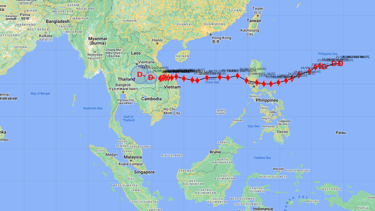 เวลา 13.00 น. วันที่ 28 ก.ย.65 กรมอุตุนิยมวิทยา ออกประกาศฉบับที่ 14 เรื่อง "พายุ โนรู" ระบุว่า เมื่อเวลา 13.00 น. วันนี้ พายุโซนร้อน “โนรู” บริเวณแขวงสาละวัน ประเทศลาว มีศูนย์กลางอยู่ห่างประมาณ 90 กิโลเมตร ทางทิศตะวันออกของอำเภอเขมราฐ จังหวัดอุบลราชธานี หรือที่ละติจูด 15.8 องศาเหนือ ลองจิจูด 106.3 องศาตะวันออก โดยมีความเร็วลมสูงสุดใกล้ศูนย์กลางประมาณ 70 กิโลเมตรต่อชั่วโมง