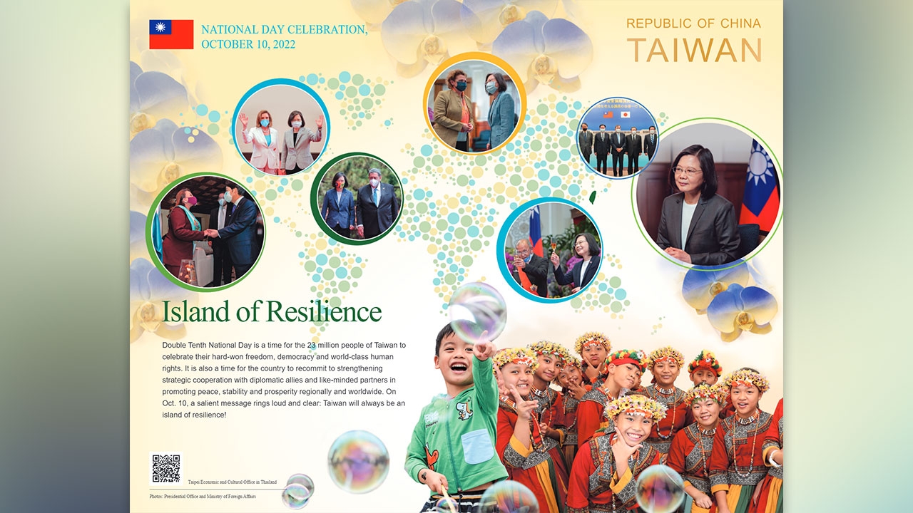 ในวันที่ 10 ตุลาคมนี้ เราขอส่งสาส์นสำคัญให้แผ่ไปทั่วทุกสารทิศว่า “ไต้หวันเป็นดินแดนที่ยืนหยัดและเข้มแข็ง แม้จะเผชิญความท้าทายมากมาย แต่สามารถฟื้นตัวขึ้นได้อย่างรวดเร็ว”