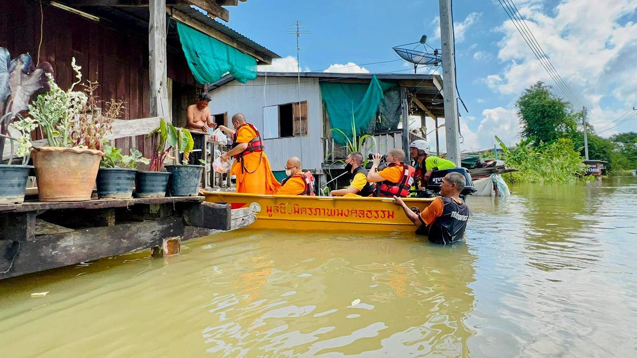 พระทำนั่งร้านจำวัดหนีน้ำท่วม
