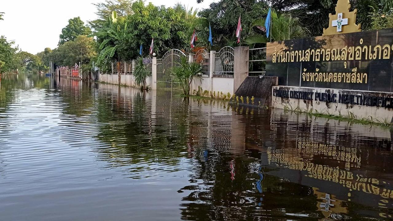 ที่ จ.นครราชสีมา น้ำท่วมเขตเทศบาลตำบลพิมาย อ.พิมาย ลดลงเป็นปกติแล้ว ส่วนโรงเรียนพิมายวิทยาระดับน้ำเหลือ 20-30 ซม. ขณะที่ด้านตลาดพิมายเมืองใหม่ บ้านเอื้ออาทร บ้านวังกุ่ม บ้านวังกลาง บ้านม่วง บ้านขาม บ้านจบก และสถานที่ส่วนราชการ น้ำสูง 50-60 ซม. บ้านพักข้าราชการตำรวจ บริเวณทางเข้าที่ว่าการอำเภอพิมาย สภ.พิมาย ศูนย์ดำรงธรรม อ.พิมาย สำนักงานที่ดิน สาธารณสุขอำเภอพิมาย อบต.ในเมือง ศูนย์การศึกษานอกระบบและการศึกษาตามอัธยาศัย (กศน.) ระยะทางกว่า 800 เมตร ยังคงมีน้ำท่วมสูงรถเล็กวิ่งผ่านไม่ได้