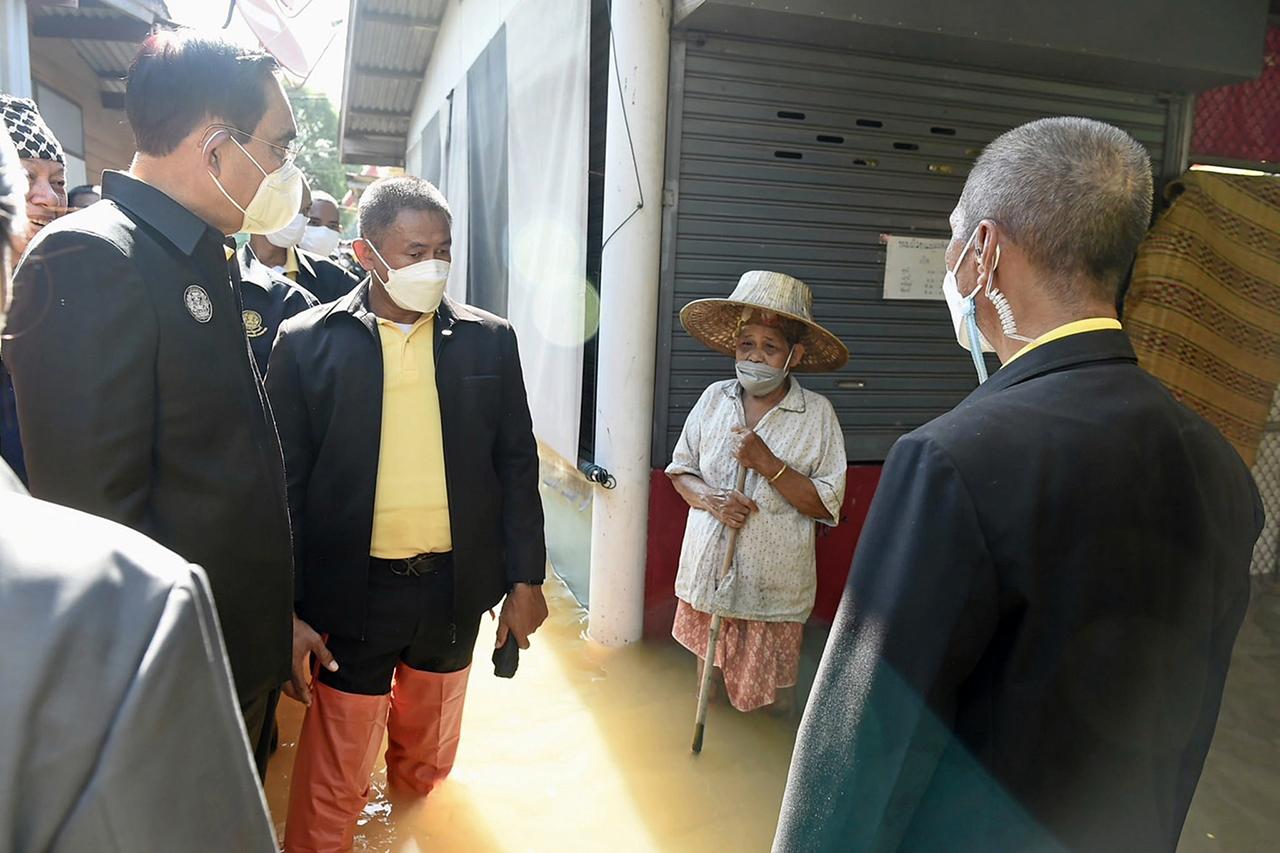เวลา 09.00 น. วันเดียวกัน พล.อ.ประยุทธ์ จันทร์โอชา นายกรัฐมนตรี และ รมว.กลาโหม พร้อม พล.อ.อนุพงษ์ เผ่าจินดา รมว.มหาดไทย นายชัยวุฒิ ธนาคมานุสรณ์ รมว.ดิจิทัลเพื่อเศรษฐกิจและสังคม และนายสุชาติ ชมกลิ่น รมว.แรงงาน ลงพื้นที่ตรวจน้ำท่วมบริเวณวัดแสงสิริธรรม ต.ท่าอิฐ อ.ปากเกร็ด จ.นนทบุรี ซึ่งเป็นชุมชนริมแม่น้ำเจ้าพระยาที่ได้รับผลกระทบจากน้ำทะเลหนุนสูงและมีน้ำท่วมขังอยู่นานนับเดือน ล่าสุดแม่น้ำเจ้าพระยาเพิ่มสูงขึ้นกว่าทุกวัน โดยมีนายประพิศ จันทร์มา อธิบดีกรม ชลประทาน นายพรพจน์ เพ็ญภาส อธิบดีกรมโยธาและผังเมือง นายสุธี ทองแย้ม ผวจ.นนทบุรี นายสุเจตน์ บุญยภักดิ์ ปลัดอำเภอปากเกร็ด รักษาการนายอำเภอปากเกร็ด และนายปรีดา เชื้อผู้ดี นายกอบต.ท่าอิฐ ร่วมรายงานสถานการณ์น้ำ