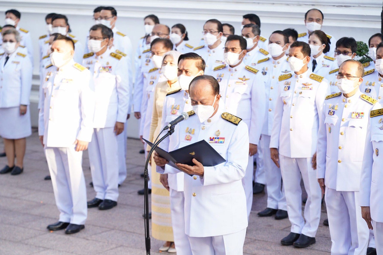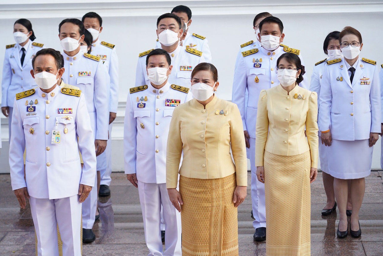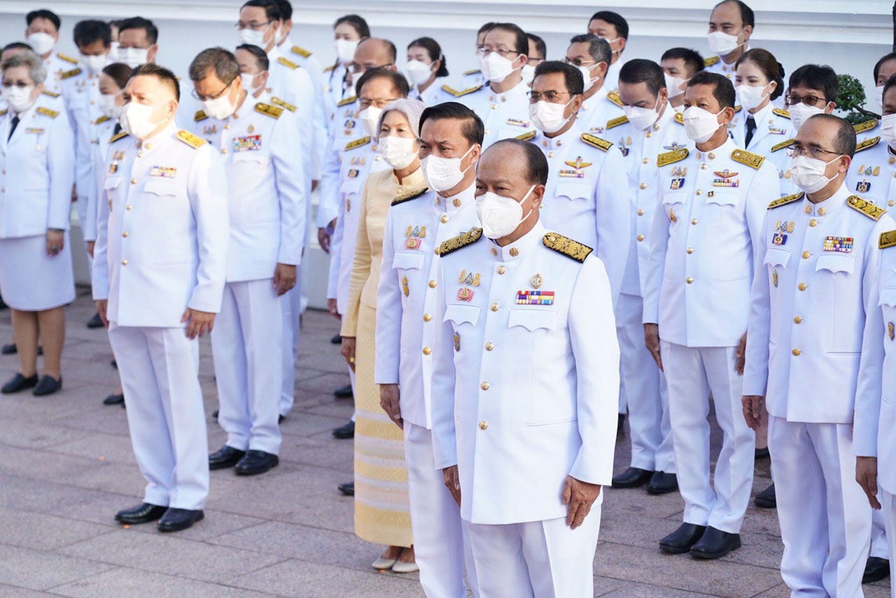 จากนั้น ในเวลา 07.00 น. พลเอก อนุพงษ์ เผ่าจินดา รัฐมนตรีว่าการกระทรวงมหาดไทย เป็นประธานในพิธีวางพวงมาลาเบื้องหน้าพระบรมฉายาลักษณ์ พระบาทสมเด็จพระบรมชนกาธิเบศร มหาภูมิพลอดุลยเดชมหาราช บรมนาถบพิตร ในนามกระทรวงมหาดไทย และ ดร.วันดี กุญชรยาคง จุลเจริญ นายกสมาคมแม่บ้านมหาดไทย วางพวงมาลาเบื้องหน้าพระบรมฉายาลักษณ์ พระบาทสมเด็จพระบรมชนกาธิเบศร มหาภูมิพลอดุลยเดชมหาราช บรมนาถบพิตร ในนามสมาคมแม่บ้านมหาดไทย และ พลเอก อนุพงษ์ เผ่าจินดา รัฐมนตรีว่าการกระทรวงมหาดไทย นำผู้ร่วมพิธียืนสงบนิ่งเป็นเวลา 89 วินาที แล้วกล่าวน้อมรำลึกในพระมหากรุณาธิคุณ ความโดยสรุปว่า “ตลอดระยะเวลากว่า 70 ปี แห่งรัชสมัยพระบาทสมเด็จพระบรมชนกาธิเบศร มหาภูมิพลอดุลยเดชมหาราช บรมนาถบพิตร ปวงพสกนิกรใต้ร่มพระบารมีทั่วราชอาณาจักร ต่างประจักษ์ซึ้งในพระมหากรุณาธิคุณและพระเมตตาที่ได้ทรงทุ่มเทกำลังพระวรกาย และกำลังพระสติปัญญาปฏิบัติพระราชกรณียกิจนานัปการ เพื่อประโยชน์สุขแห่งปวงพสกนิกร โครงการในพระราชดำริน้อยใหญ่ จำนวน 4,741 โครงการ ก่อให้เกิดประโยชน์อย่างอเนกอนันต์แก่ประเทศชาติ ทั้งได้พระราชทานหลักปรัชญาของเศรษฐกิจพอเพียง เพื่อเป็นแนวทางให้อาณาประชาราษฎร์ได้ดำเนินชีวิตโดยใช้ความรู้และสติปัญญาเป็นภูมิคุ้มกัน อีกทั้งยังก่อให้เกิดประโยชน์แก่ประชาชนของประเทศต่าง ๆ ที่ได้น้อมนำแนวทางพระราชทานไปปฏิบัติพระเกียรติคุณแผ่ไพศาลขจรขจายไปทั่วทิศานุทิศด้วยดวงจิตที่บริสุทธิ์ของปวงข้าพระพุทธเจ้าที่ล้วนสำนึกในพระมหากรุณาธิคุณอันหาที่สุดมิได้ ปวงข้าพระพุทธเจ้าจักน้อมนำแนวทางพระราชดำริที่ได้พระราชทานไว้เป็นเครื่องยึดเหนี่ยวในการปฏิบัติหน้าที่และดำรงตนเพื่อสร้างประโยชน์สุขแก่ประเทศชาติสืบไป”