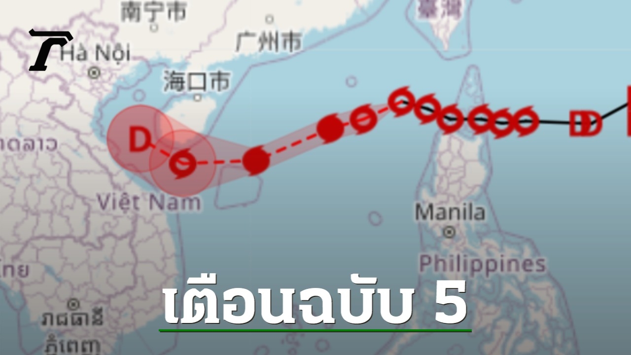 กรมอุตุนิยมวิทยา ประกาศเตือนภัยฉบับที่ 5 "ไต้ฝุ่น เนสาท" จ่อขึ้นฝั่งเวียดนาม 20-21 ต.ค. 65 กระทบไทยตอนบนฝนตกเล็กน้อย ส่วนภาคใต้มีฝนตกหนักถึงหนักมาก