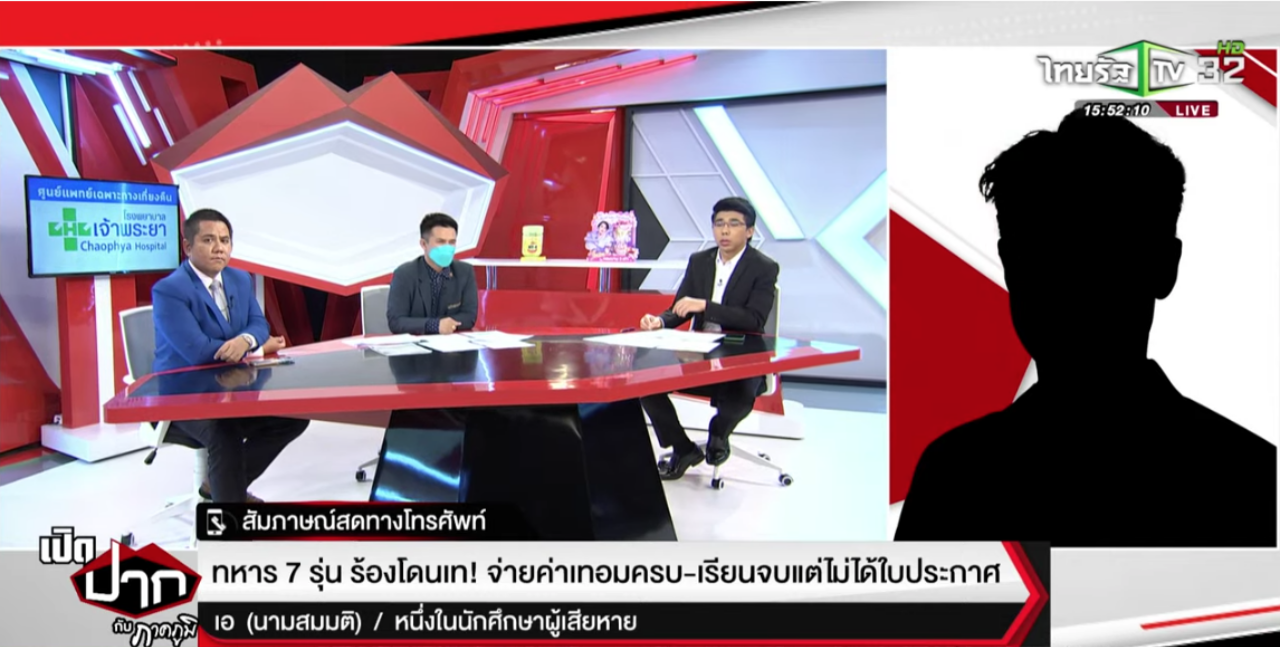 ขณะที่ นายเอ หนึ่งในนักศึกษาผู้เสียหาย เล่าว่า หลักสูตรนี้เป็นหลักสูตรที่ดีมาก เพราะกองทัพบกต้องการส่งเสริมให้ทหารชั้นผู้น้อยได้สำเร็จการศึกษาปริญญาตรี เพื่อเอาไปสร้างความก้าวหน้าในชีวิตการทำงาน โดยมีมหาวิทยาลัยแห่งนี้มาขอทำความร่วมมือ MOU ด้วย