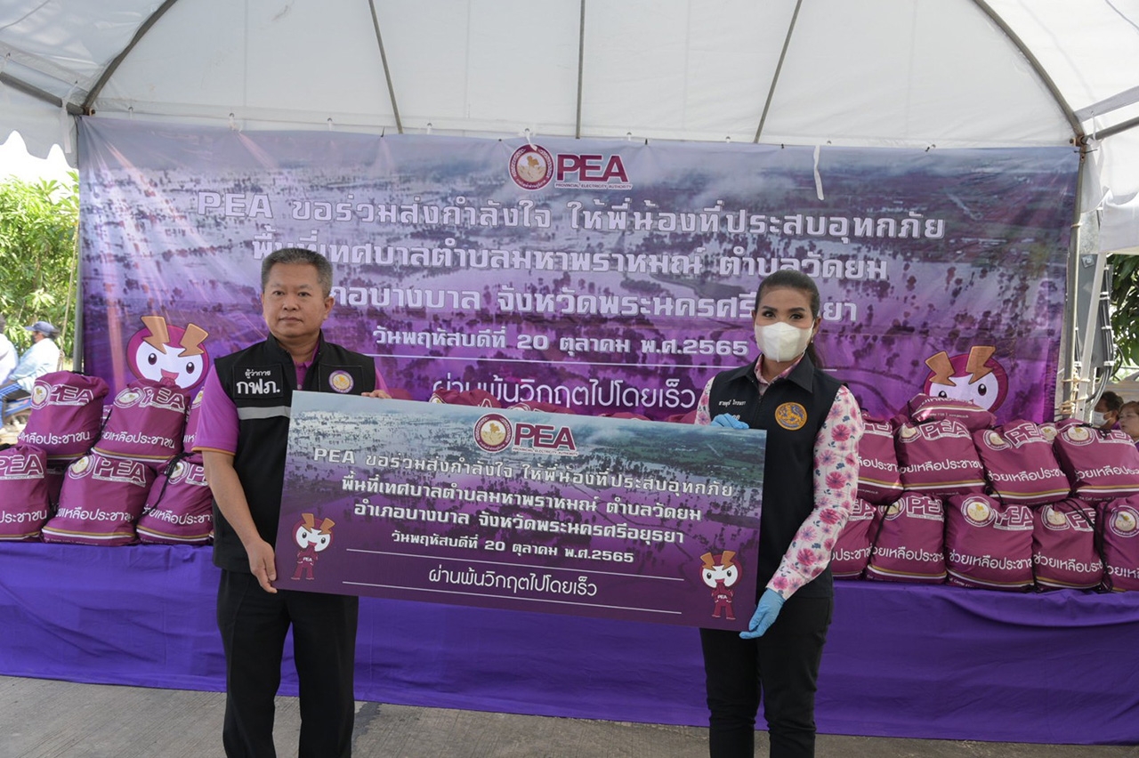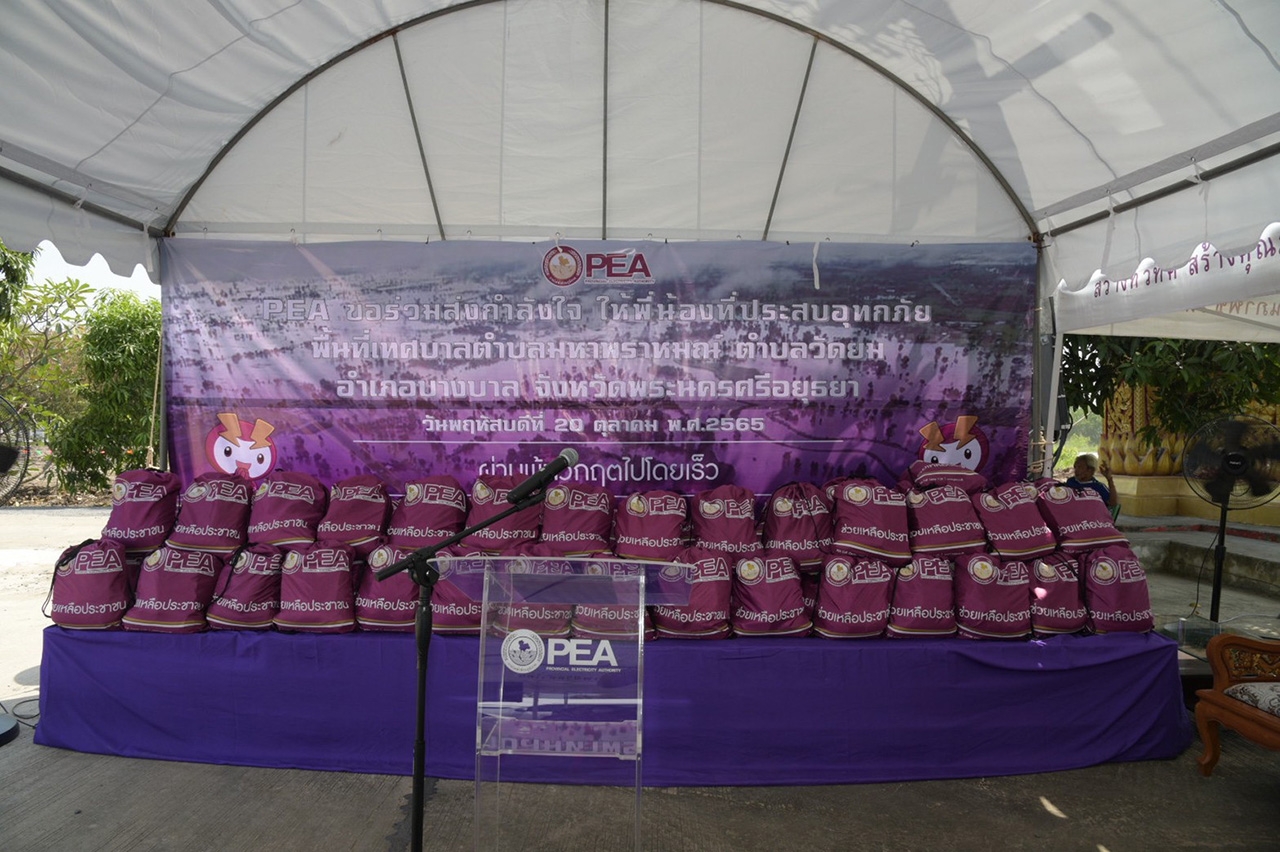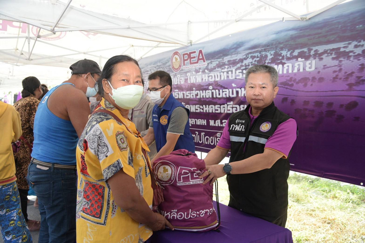 การไฟฟ้าส่วนภูมิภาค (PEA) จัดกิจกรรม PEA ขอร่วมส่งกำลังใจ ให้พี่น้องที่ประสบอุทกภัยในพื้นที่ การไฟฟ้าส่วนภูมิภาค เขต 1 (ภาคกลาง) จังหวัดพระนครศรีอยุธยา โดยมอบถุงยังชีพเพื่อช่วยเหลือประชาชนที่ประสบอุทกภัย ในพื้นที่จังหวัดพระนครศรีอยุธยา ตําบลตำบลบ้านโพธิ์ อำเภอเสนา จํานวน 380 ครัวเรือน และในพื้นที่ ตำบลวัดยม อำเภอบางบาล จำนวน 320 ครัวเรือน