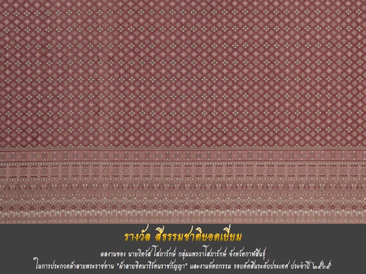 2. รางวัลสีธรรมชาติยอดเยี่ยม ได้แก่ นายวิทวัส โสภารักษ์ กลุ่มแพรวาโสภารักษ์ ประเภทแพรวา จังหวัดกาฬสินธุ์