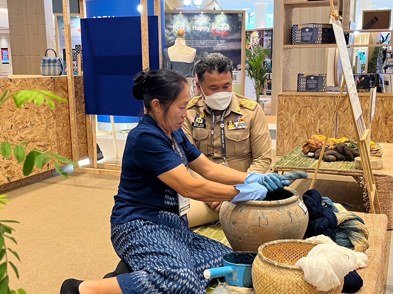 “ดอนกอยโมเดล” ในวันนี้ ทำให้ปลายน้ำของวงจรชีวิตของคนที่มีความขยันหมั่นเพียรอุตสาหะ ผลิตชิ้นงานขึ้นมาได้มีโอกาสแพร่กระจายให้คนทั่วโลกได้มีโอกาสชื่นชมและสามารถเลือกซื้อสินค้าได้ เป็นการตอกย้ำถึงพระอัจฉริยภาพของพระองค์ที่ทรงสืบสานคุณค่าแห่งมรดกภูมิปัญญาวัฒนธรรมไทยไปสู่การตลาดที่สร้างมูลค่าทางเศรษฐกิจมหาศาล ยังประโยชน์ให้คุณภาพชีวิตน้องพี่น้องประชาชนดีขึ้นอย่างยั่งยืน ทั้งนี้ ภายในบูธดอนกอยโมเดล นอกจากการจัดแสดงภูมิปัญญาและฝีมือของช่างทอผ้าแล้ว ยังมีกิจกรรมแสดงและสาธิต ได้แก่ กิจกรรมย้อมสีธรรมชาติ ย้อมคราม กิจกรรมค้นฮูก กิจกรรมกวักหมี่ กิจกรรมอิ้วฝ้าย/ดีด กิจกรรมมัดหมี่ กิจกรรมคันหมี่ กิจกรรมกวัดฝ้าย กิจกรรมเข็นฝ้าย กิจกรรมทอผ้า และกิจกรรมแสดงเส้นไหมย้อมจากสีธรรมชาติ รวมทั้งมีการจำหน่ายผลิตภัณฑ์จากผ้าย้อมคราม ทั้งเสื้อผ้าเครื่องนุ่งห่ม ผ้าพันคอ กระเป๋า และสินค้าประเภทต่างๆ ที่ทำจากผลิตภัณฑ์ผ้าย้อมคราม ซึ่งได้รับความสนใจจากสื่อมวลชนและแขกที่เข้าร่วมการประชุมครั้งนี้เป็นจำนวนมาก และคาดว่าการออกบูธในครั้งนี้ จะสร้างรายได้เพื่อเป็นขวัญกำลังใจและคุณภาพชีวิตที่ดีให้กับพี่น้องประชาชนกลุ่มทอผ้า ทั้งยังเป็นการเผยแพร่อัตลักษณ์ภูมิปัญญาผ้าไทยที่มีความทันสมัย มีความเป็นแฟชั่นนิยมไปสู่สายตาคนทั่วทั้งโลกต่อไป” นายสุทธิพงษ์ฯ กล่าวในช่วงท้าย