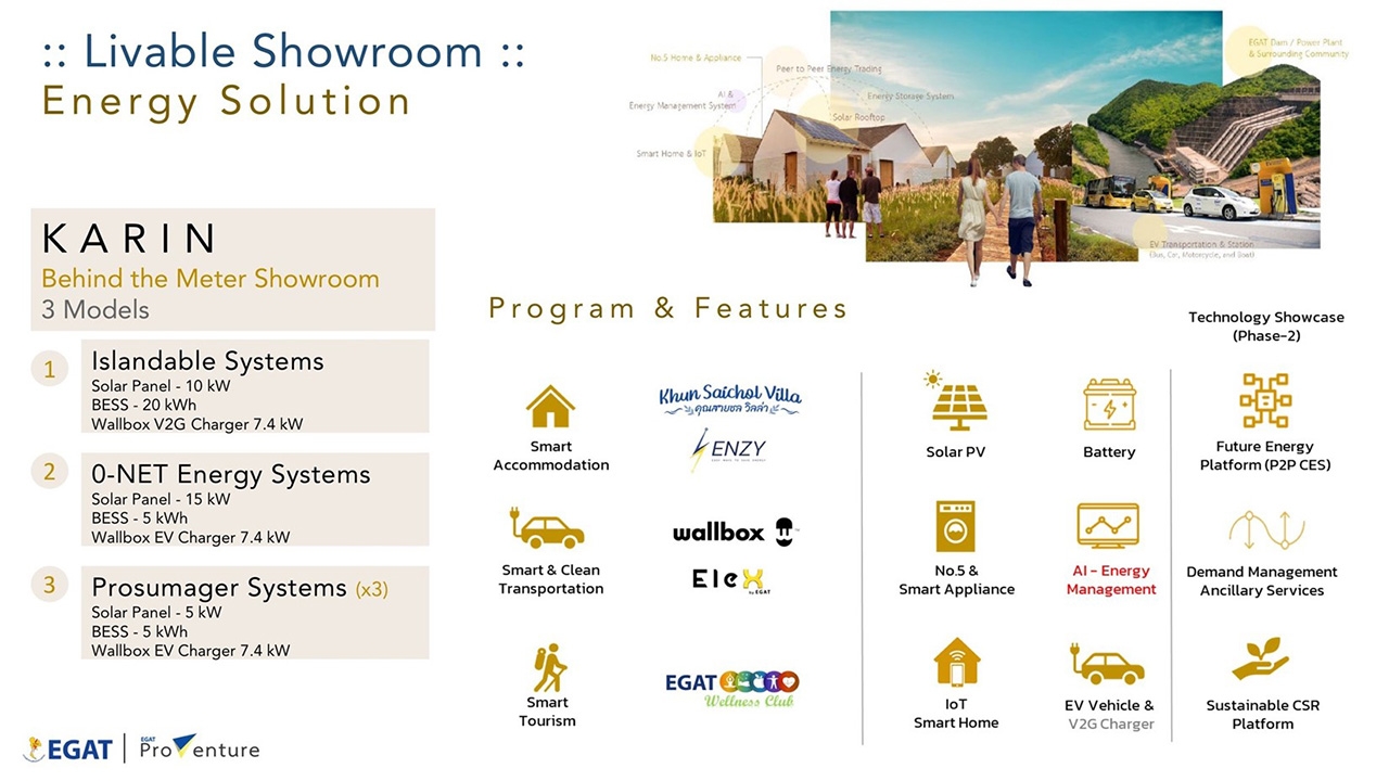 แม้ปัจจุบันพฤติกรรมผู้ใช้ไฟกำลังเปลี่ยนไปในทิศทางที่เป็นทั้งผู้ผลิตไฟและผู้ขายไฟพร้อมๆ กัน แต่บ้านครินทร์เป็นมากกว่านั้น ด้วยโมเดล “Prosumager System” ที่จะทำให้ประชาชนกลายเป็น “ผู้ผลิตไฟฟ้า” (Produce) ผู้ใช้ไฟฟ้า (Consume) และ “ผู้ที่บริหารจัดการการใช้ไฟได้เอง” (Manage) ครบสูตรสำเร็จ ด้วยการจำลองบ้านที่ติดตั้งโซลาร์เซลล์ แบตเตอรี่ อุปกรณ์ชาร์จยานยนต์ไฟฟ้า และระบบบริหารจัดการพลังงาน เพื่อเตรียมพร้อมเข้าสู่ตลาดการซื้อขายไฟ (Peer To Peer Energy Trading Platform) ได้ในอนาคต