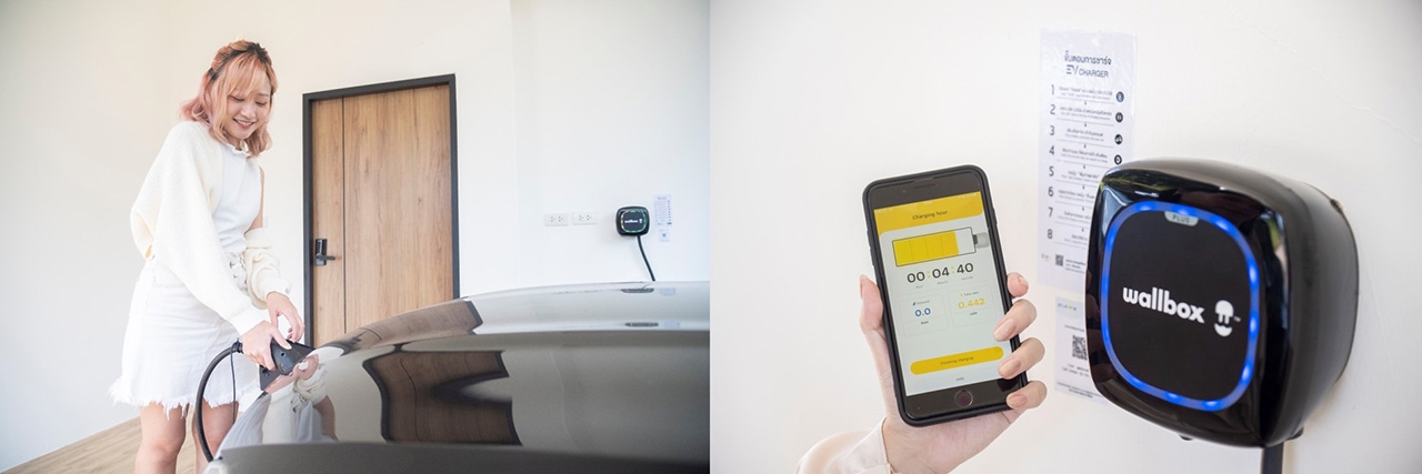 บ้านครินทร์ทุกหลังมีการติดตั้งอุปกรณ์ชาร์จยานยนต์ไฟฟ้า Wallbox ที่ชาร์จไฟฟ้าง่ายๆ ผ่านแอปพลิเคชัน EleXA ของ กฟผ. รองรับการใช้ EV ที่มีแนวโน้มสูงขึ้นเรื่อยๆ สร้างความมั่นใจให้กับผู้ขับรถ EV ในการมาเที่ยวพักผ่อนว่ามีที่ชาร์จแน่นอน