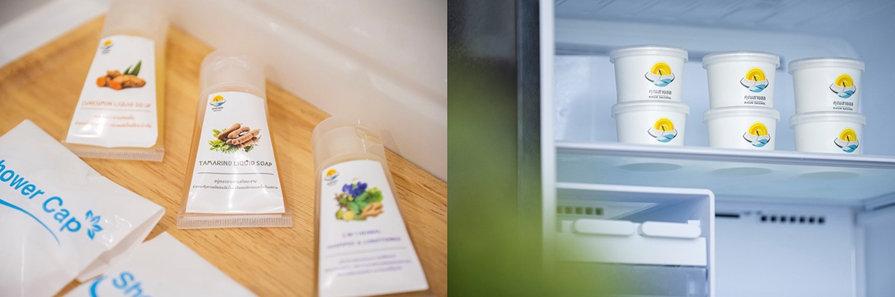 นอกจากประสบการณ์ด้านนวัตกรรมพลังงานที่ กฟผ. มุ่งมั่นส่งมอบให้กับผู้ที่สนใจเข้าพักในบ้านครินทร์แล้ว ทุกคนจะได้พบกับของดี ของอร่อย จากวิสาหกิจชุมชนรอบเขื่อนศรีนครินทร์ ที่ กฟผ. ให้การสนับสนุนมากมาย อาทิ สบู่ แชมพู ซึ่งให้บริการกับผู้เข้าพักฟรี พร้อม welcome snack ที่ยกขบวนของอร่อยมาเสิร์ฟถึงที่ ทั้งไอศกรีม คุณสายชล กล้วยขันหมากกล้วยตากพลังงานแสงอาทิตย์ ด้วยความมุ่งหวังในการช่วยยกระดับเศรษฐกิจชุมชนรอบเขต เขื่อน โรงไฟฟ้า ของ กฟผ. ให้อยู่ดีมีสุข และเติบโตไปพร้อมกัน