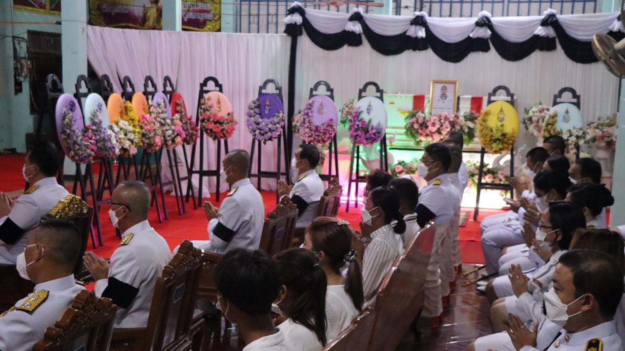 "พระบาทสมเด็จพระเจ้าอยู่หัว" และ "พระบรมวงศานุวงศ์" พระราชทานพวงมาลา วางหน้าหีบศพ 2 กำลังพลเรือหลวงสุโขทัย ชาวระยอง-กำแพงเพชร ผู้ประสบเหตุเสียชีวิตจากเหตุ "ร.ล.สุโขทัย" อับปางกลางทะเล