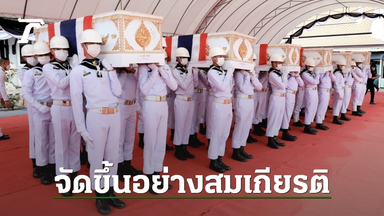 "กองทัพเรือ" ประกอบพิธีพระราชทานเพลิงศพ 6 วีรชน "เรือหลวงสุโขทัย" ส่งดวงวิญญาณสู่สัมปรายภพ โดยจัดพิธีขึ้นอย่างสมเกียรติ