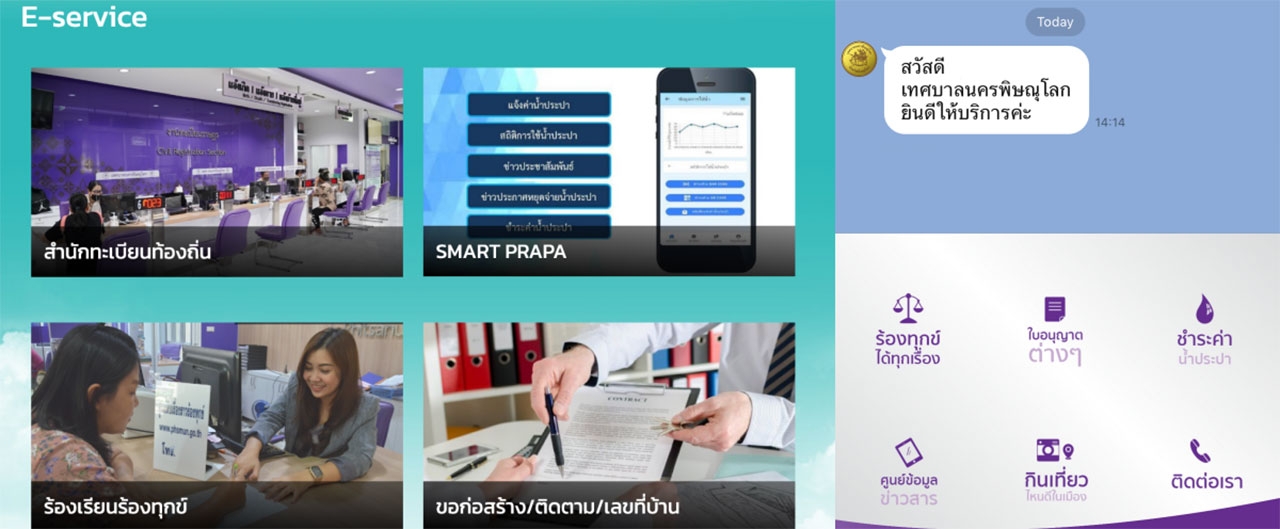 นอกจาก 18 โครงการใน Smart City เทศบาลนครพิษณุโลกได้ปรับบริการเข้าสู่ E-Services บนเว็บไซต์ และการแจ้งเรื่องราวร้องทุกข์ผ่าน LINE ‘Phitsanulok Connext’ เพื่อให้ประชาชนเข้าถึงเทศบาลได้สะดวกยิ่งขึ้น