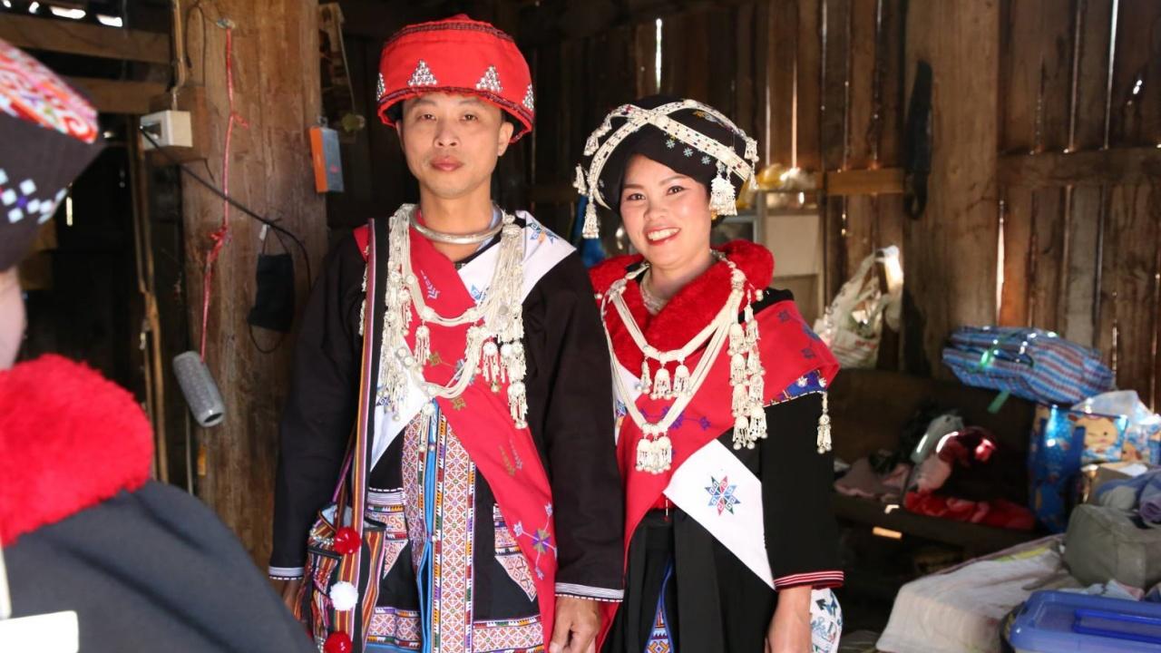 ซึ่งงานแต่งนั้น จัดขึ้นตามแบบประเพณีพื้นบ้านของเผ่าอิ้วเมี่ยน โดยเจ้าบ่าวและเจ้าสาวแต่งตัวด้วยชุดประจําเผ่า สำหรับแขกที่มาร่วมงานนั้น ก็มีทั้งคนไทย และชนชาติพันธ์ุจำนวนมาก ที่เดินทางมาร่วมงาน และแสดงความยินดีกับคู่บ่าวสาว