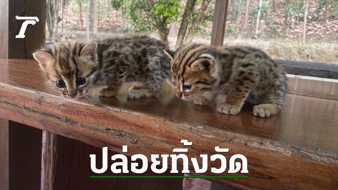 เจ้าหน้าที่อุทยานแห่งชาติศรีลานนา เดินทางไปรับ "แมวดาว" เพศเมีย 2 ตัว อายุประมาณ 2 เดือน ถูกปล่อยทิ้งวัด คาดคนนำมาปล่อยกลัวความผิด