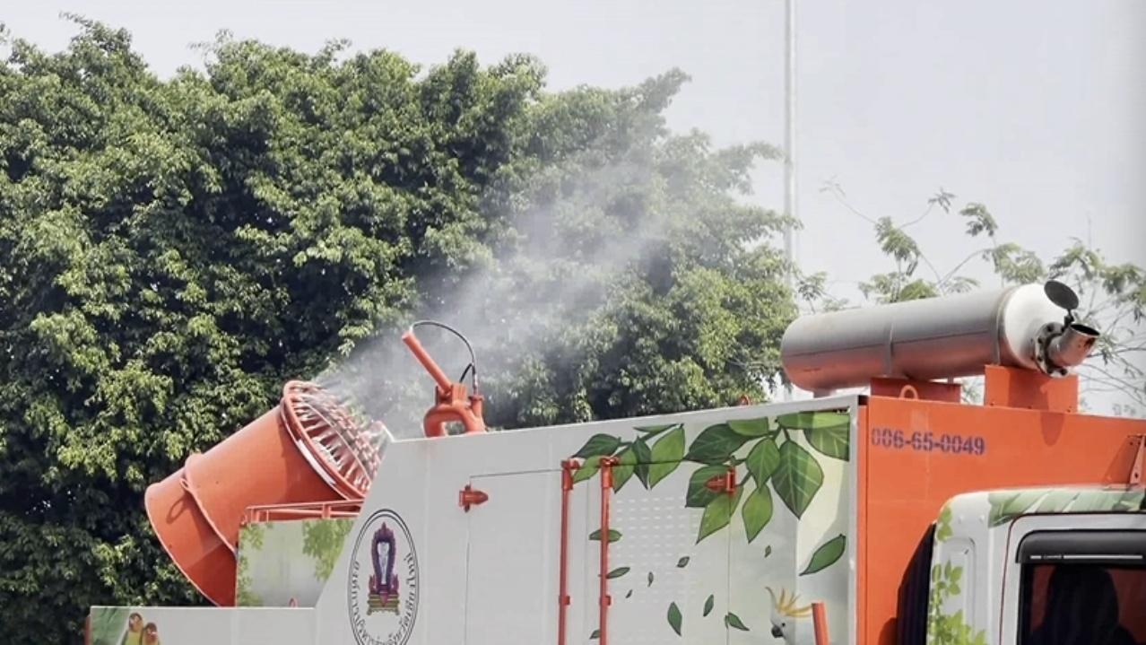 เชียงใหม่ เร่งฉีดน้ำในหลายอำเภอ เพิ่มความชุ่มชื้นในอากาศ และชะล้างฝุ่นควันพิษ PM 2.5 จากไฟป่าและการเผาที่ลอยคละคลุ้งอยู่ในอากาศ ที่เกินมาตรฐานหลายจุด