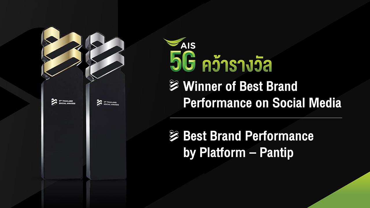 AIS ยังคงยืนหนึ่งในฐานะแบรนด์ที่ทำผลงานบนช่องทางโซเชียลมีเดียได้อย่างยอดเยี่ยม ด้วยการคว้าถึง 2 รางวัล จากเวที THAILAND SOCIAL AWARDS 2023 ประกอบไปด้วย รางวัล Winner of Best Brand Performance on Social Media สาขากลุ่มธุรกิจโทรคมนาคม 6 ปีซ้อน และ รางวัล Best Brand Performance by Platform - Pantip ตอกย้ำความเชื่อและวิสัยทัศน์ของ AIS ที่มุ่งมั่นตั้งใจในการพัฒนาโครงข่ายสื่อสาร 5G ผ่านบริการดิจิทัลที่ตอบโจทย์กับดิจิทัลไลฟ์สไตล์ รวมถึงยังเป็นแบรนด์ที่พร้อมช่วยเหลือดูแลลูกค้าในทุกช่องทาง โดยเฉพาะในช่องทางโซเชียลมีเดีย ที่วันนี้ AIS ไม่ได้มองเป็นเพียงแค่ช่องทางในการสื่อสารกับลูกค้า แต่เป็นพื้นที่ในการรับฟัง เพื่อนำข้อมูลไปปรับปรุงพัฒนาคุณภาพบริการให้ดีมากยิ่งขึ้น