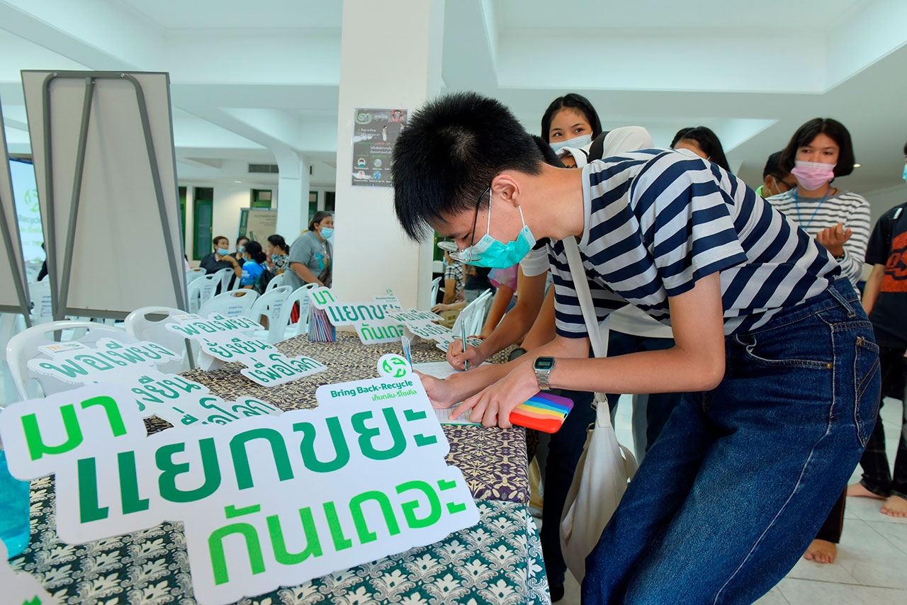 นอกจากนี้ ยังได้ส่งเสริมให้เยาวชนได้ร่วมกันตระหนักถึงความสำคัญด้านสิ่งแวดล้อมผ่านภายใต้แนวคิด ‘ชุมชน พอเพียง ยั่งยืน เพื่อโลก’ ผ่านกิจกรรม ‘เก็บกลับ-รีไซเคิล’ โดย บริษัท ไทยเบฟเวอเรจ รีไซเคิล จำกัด ในการร่วมสร้างความรู้ความเข้าใจและปลูกฝังการจัดการขยะในชุมชนได้อย่างมีประสิทธิภาพ อาทิ การเก็บกลับบรรจุภัณฑ์หลังการบริโภคตั้งแต่ต้นทาง เพื่อให้สามารถนำกลับไปสู่กระบวนการรีไซเคิล การเพิ่มมูลค่าขยะบางประเภทและแปรเปลี่ยนเป็นรายได้ เป็นต้น