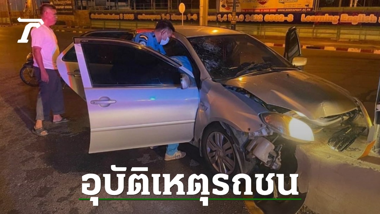 เมื่อเวลา 02.30 น. วันที่ 6 พ.ค. 2566 พ.ต.ต.หญิง รุ่งทอง สูนสมงาม สารวัตรสอบสวน สภ.สามพราน จ.นครปฐม ได้รับแจ้งมีอุบัติเหตุรถยนต์เฉี่ยวชนเสาไฟฟ้าเกาะกลางถนน โดยเหตุเกิดที่บริเวณหน้าวัดสามพราน หมู่ 7 ต.สามพราน จังหวัดนครปฐม หลังรับแจ้งจึงรายงานให้ผู้บังคับบัญชาทราบและเดินทางไปตรวจสอบพร้อมหน่วยกู้ชีพมูลนิธิกู้ภัยพรานพิทักษ์