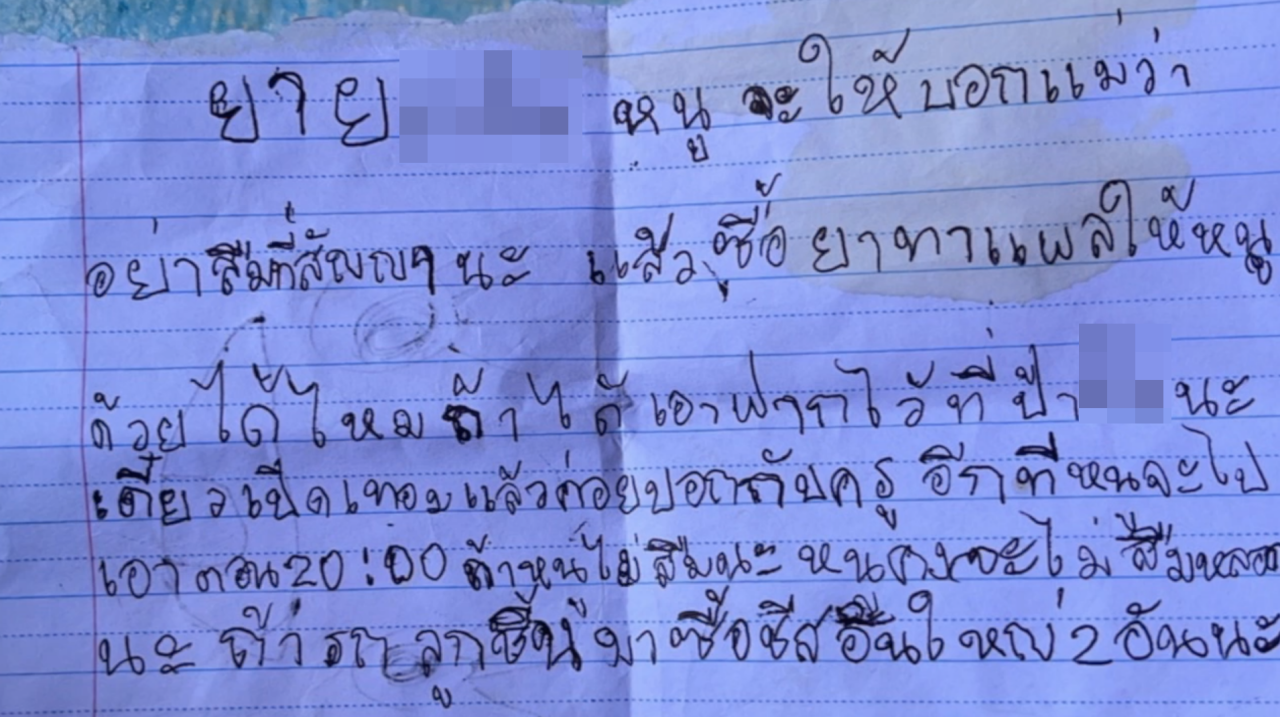 มูลนิธิวินวิน เข้าช่วยเหลือหนูน้อยวัย 11 ปี เขียนจดหมายลับถึงยายให้ซื้อยาทาแผล ขอความช่วยเหลือไม่อยากอยู่กับพ่อแล้ว ด้านหน่วยงานที่เกี่ยวข้องเตรียมเรียกตัวพ่อ