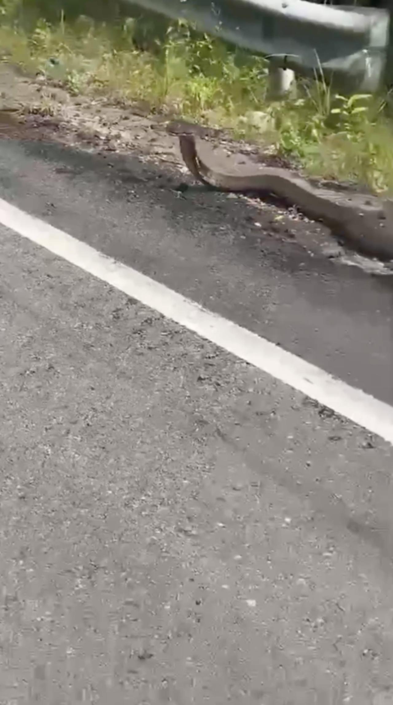 จากนั้นจะขี่รถไปต่อ แต่ปรากฏว่าอีกฝั่งถนนก็มีงูจงอางตัวใหญ่อีกตัวอยู่ด้วย ยอมรับว่าตอนนั้นตกใจขาสั่นเลยทีเดียว เพราะเจองูขนาดใหญ่พร้อมกันถึง 2 ตัว ซึ่งต่อมา ตนเอาคลิปไปให้ญาติๆ ดู ต่างบอกว่าน่าจะเป็นงูจงอางเจ้าที่ เพราะมีขนาดใหญ่ และคาดว่าทั้ง 2 ตัว น่าจะเป็นตัวเมียและตัวผู้ที่ออกจากป่ามาหากัน เพื่อจับคู่ผสมพันธุ์ ซึ่งการจะพบเจอพร้อมกันแบบนี้ ไม่ได้มีบ่อยนัก.