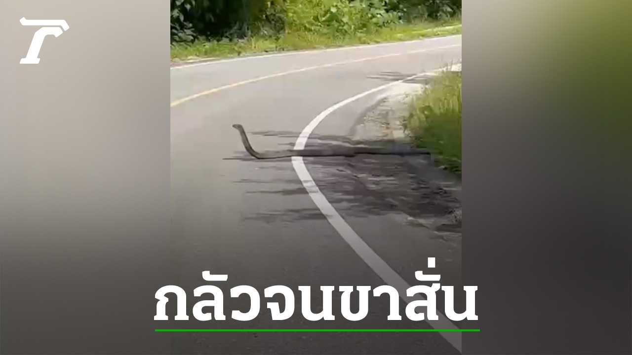 เด็กวัย 15 แทบช็อก ขี่รถจักรยานยนต์กลับบ้าน ระหว่างทางเจอจงอางยักษ์ 2 ตัว อยู่คนละฝั่งถนน ยอมรับเห็นแล้วกลัวจนขาสั่น คาดเป็นตัวผู้กับตัวเมียออกมาจับคู่ผสมพันธุ์