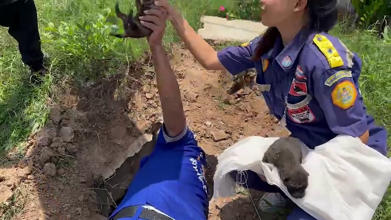 ภายในท่อระบายน้ำพบลูกสุนัขทั้ง 6 ตัวตามที่รับแจ้ง อยู่ใต้ท่อระบายน้ำขนาด 60 ซม.จึงเอาจอบมาขุดดินเปิดให้กว้าง แล้วช่วยกันเอาลูกสุนัขออกมาทีละตัวจนครบทั้ง 6 ตัว เป็นเพศผู้ 4 เพศเมีย 2 ตัวได้อย่างปลอดภัย