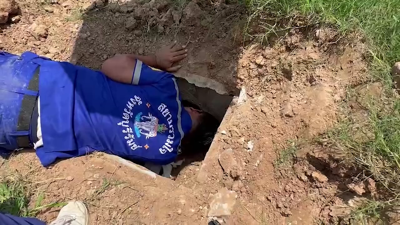 หน่วยกู้ภัยฯ นำทีมเข้าไปตรวจสอบและค้นหาประมาณ 2 ชม. เห็นเจ้าน้ำตาล พยายามจะมุดเข้าไปที่ท่อระบายน้ำ จึงเข้าไปค้นหาพบมีปล่องดินทะลุไปหาท่อระบายน้ำขนาดพอที่เจ้าน้ำตาลจะลอดไปได้