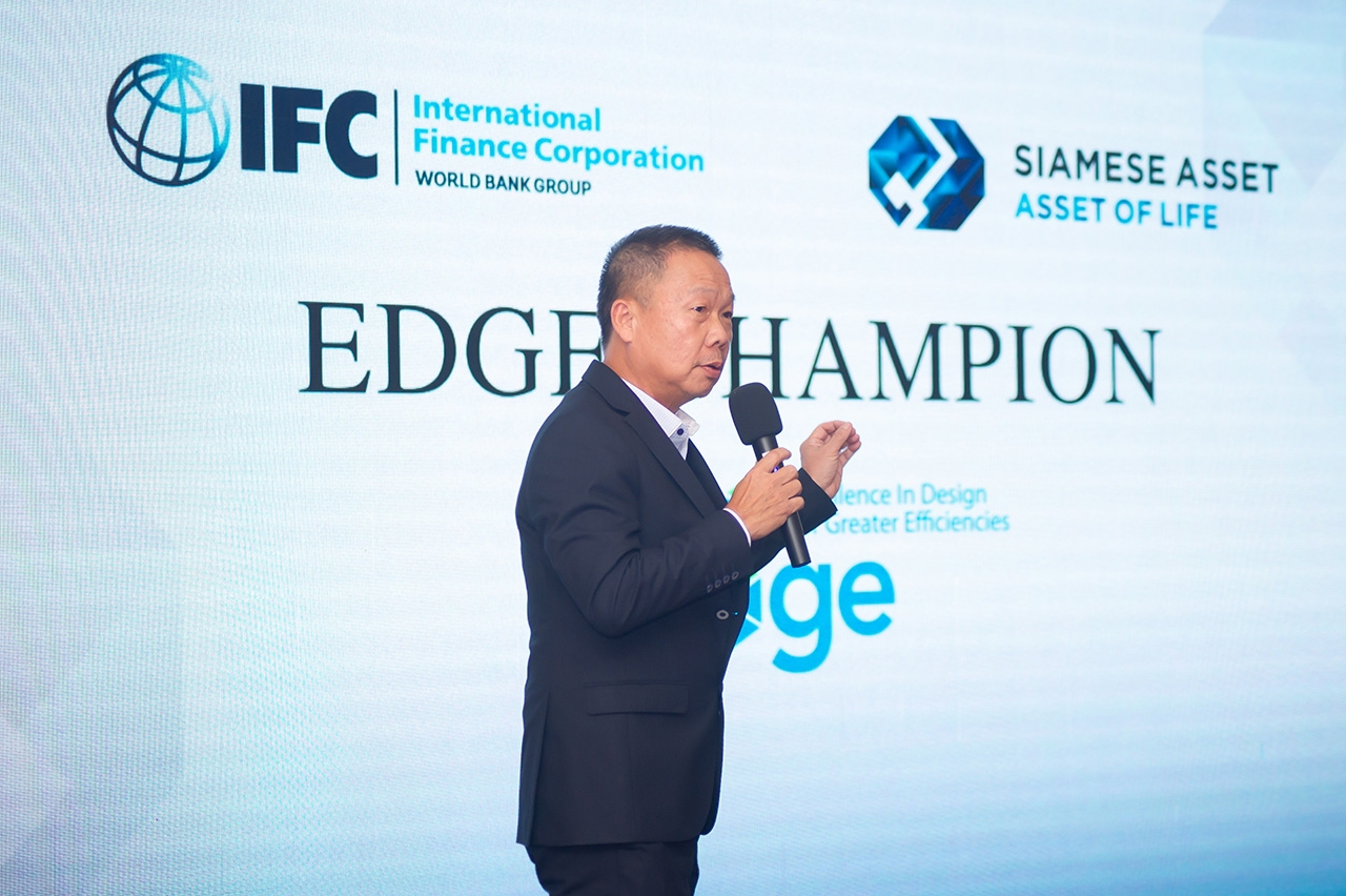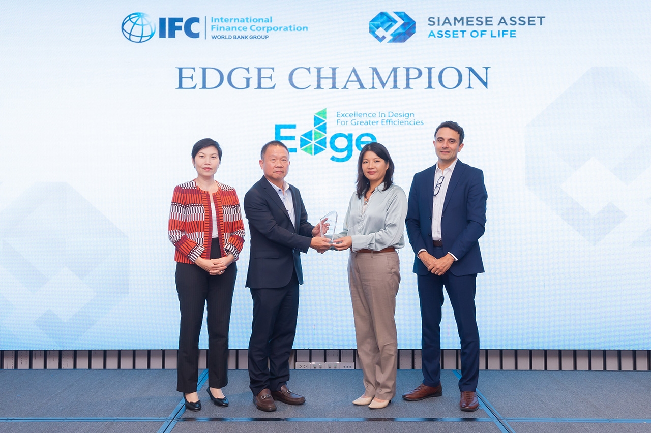 ทั้งนี้ EDGE Champion เป็นมาตรฐานอาคารเขียวและการวัดผลการก่อสร้างอย่างยั่งยืน เป็นนวัตกรรมในการรับรองมาตรฐานความเป็นเลิศในการออกแบบอาคาร สำหรับตลาดเกิดใหม่ของบรรษัทเงินทุนระหว่างประเทศ (IFC) ซึ่งเป็นสมาชิกของกลุ่มธนาคารโลกคำนึงถึงผลกระทบด้านสิ่งแวดล้อม และเป็นรางวัลระดับองค์กรอย่างถาวร โดยองค์กรให้คำมั่นว่าจะพัฒนาโครงการโดยมี Edge รับรองผลงานการก่อสร้าง 80% หรือมากกว่านั้นของโครงการที่กำลังพัฒนาอยู่ โดยมุ่งเน้นการประหยัดพลังงานใน 3 ส่วนด้วยกัน ได้แก่ การใช้พลังงาน (Energy Efficiency) การใช้น้ำ (Water Efficiency) และการใช้วัสดุก่อสร้างอาคาร (Material Efficiency)