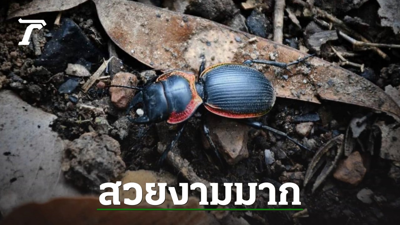 "อุทยานแห่งชาติน้ำพอง" เผยภาพความสวยงามของ "ด้วงดินขอบทองแดง" แมลงคุ้มครองที่หายาก ใกล้สูญพันธุ์