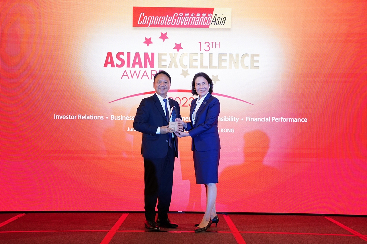 งาน The 13th Asian Excellence Awards 2023 จัดขึ้นเป็นครั้งที่ 13 ภายใต้แนวคิด Asia: Leading the Way มีบริษัทชั้นนำกว่า 53 บริษัท จาก 10 ประเทศในเอเชีย เข้ารับรางวัล ณ โรงแรม JW Marriott เขตปกครองพิเศษฮ่องกงแห่งสาธารณรัฐประชาชนจีน เมื่อวันที่ 26 มิถุนายน 2566 ที่ผ่านมา โดยพิจารณารางวัลจากข้อมูลองค์กรร่วมกับผลการสำรวจความคิดเห็นของนักลงทุน นักวิเคราะห์ และผู้ทรงคุณวุฒิ ทั่วภูมิภาคเอเชีย เพื่อมอบรางวัลนี้ให้กับบุคคลหรือองค์กรที่ดำเนินงานภายใต้หลักธรรมาภิบาล มีความโปร่งใส ตรวจสอบได้ รวมถึงมีแนวทางการเติบโตอย่างยั่งยืน พร้อมดูแลรับผิดชอบชุมชน สังคม และสิ่งแวดล้อมในระดับดีเยี่ยม