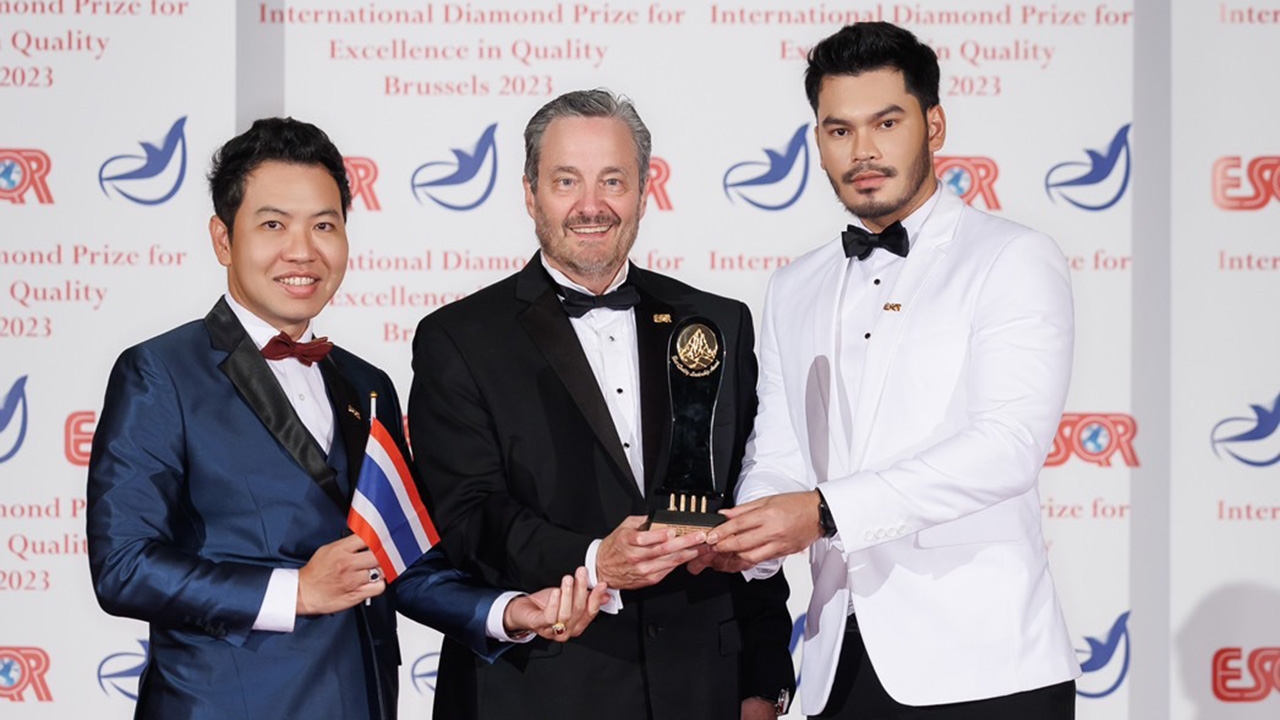 คุณวัชรกุล อุบลพวง ผู้อำนวยการฝ่ายต่างประเทศ และ คุณชรัมพล เม่นขาว ผู้อำนวยการตลาดและการประชาสัมพันธ์ บริษัท โบต้า-พี เวิลด์ จำกัด ภายใต้แบรนด์ BOTA-P ตัวแทนประเทศไทย บินลัดฟ้าเข้ารับรางวัล Best Quality Leadership Award 2023 ผู้นำด้านการพัฒนาคุณภาพสินค้าและองค์กรระดับสากลยอดเยี่ยม 2023 จัดโดย European Society for Quality Research(ESQR) ณ เมืองบรัสเซลส์ ประเทศเบลเยียม