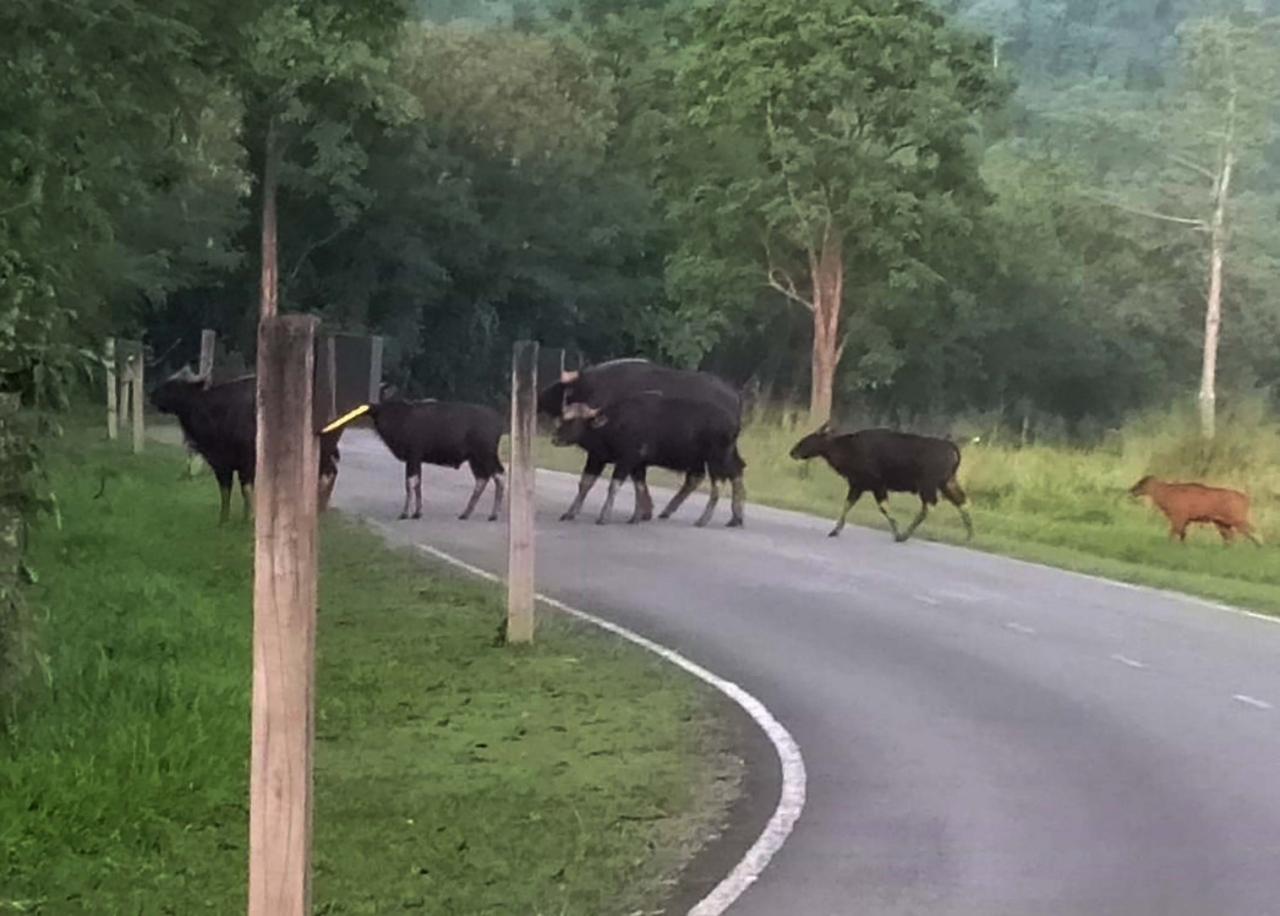 ชาวบ้านตื่นตา พบฝูงกระทิงป่าเขาใหญ่นับร้อยตัวออกหากินหญ้านอกเขตอุทยานฯ ส่วนมากจะพบฝูงหนึ่งประมาณ 5-8 ตัว