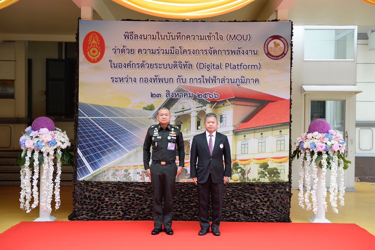 PEA และ กองทัพบก ร่วมลงนามบันทึกความเข้าใจว่าด้วยความร่วมมือโครงการจัดการพลังงานในองค์กรด้วยระบบดิจิทัล และลงนามบันทึกข้อตกลงโครงการจัดการพลังงานไฟฟ้าจากระบบผลิตไฟฟ้าพลังงานแสงอาทิตย์