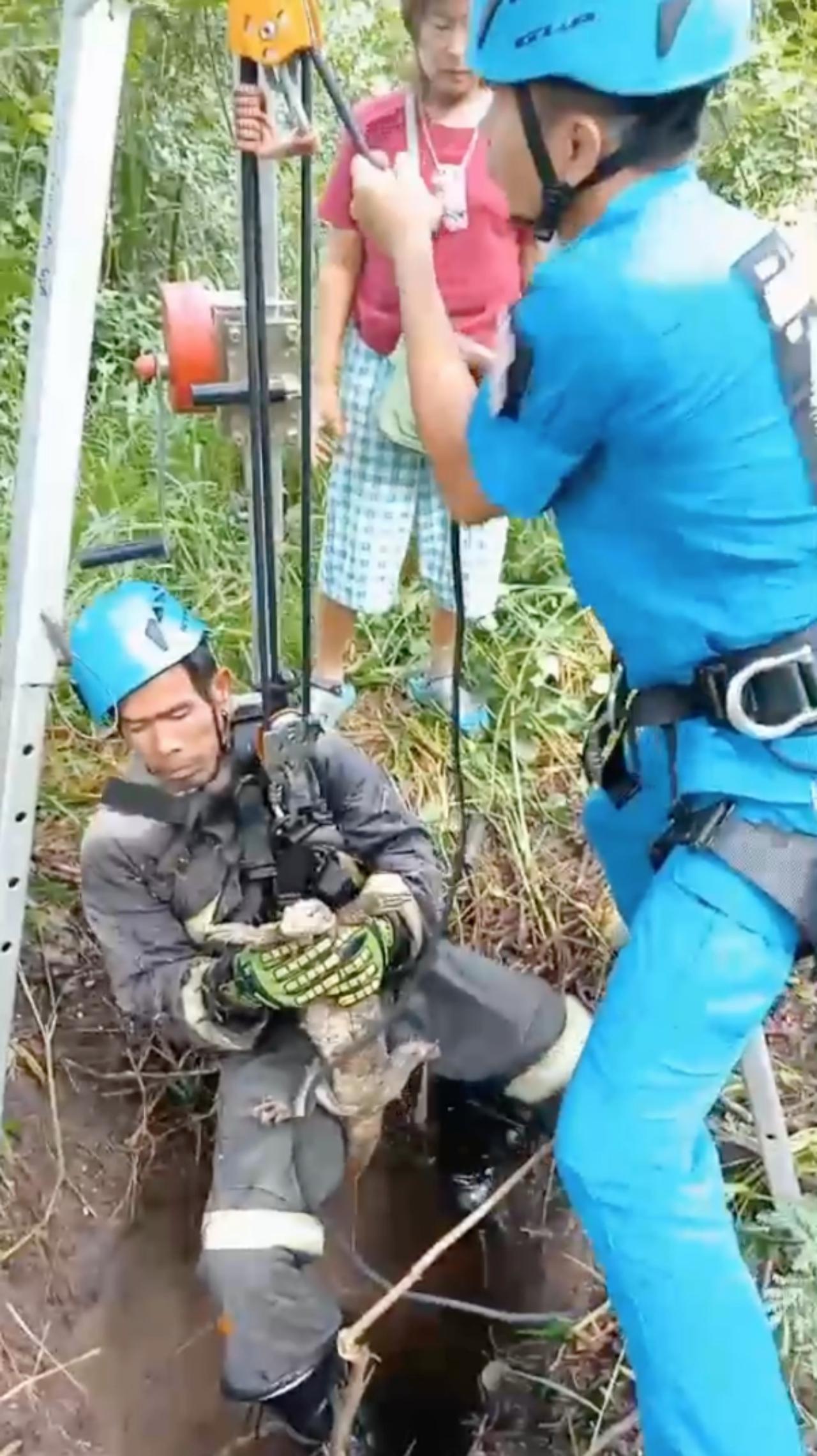 ทุกชีวิตมีค่า กู้ภัยปฏิบัติภารกิจโหนเชือกลงช่วย "ตัวเงินตัวทอง" ตกบ่อน้ำร้างลึก 5 เมตร ใช้เวลากว่า 1 ชั่วโมงนำขึ้นมาสำเร็จ