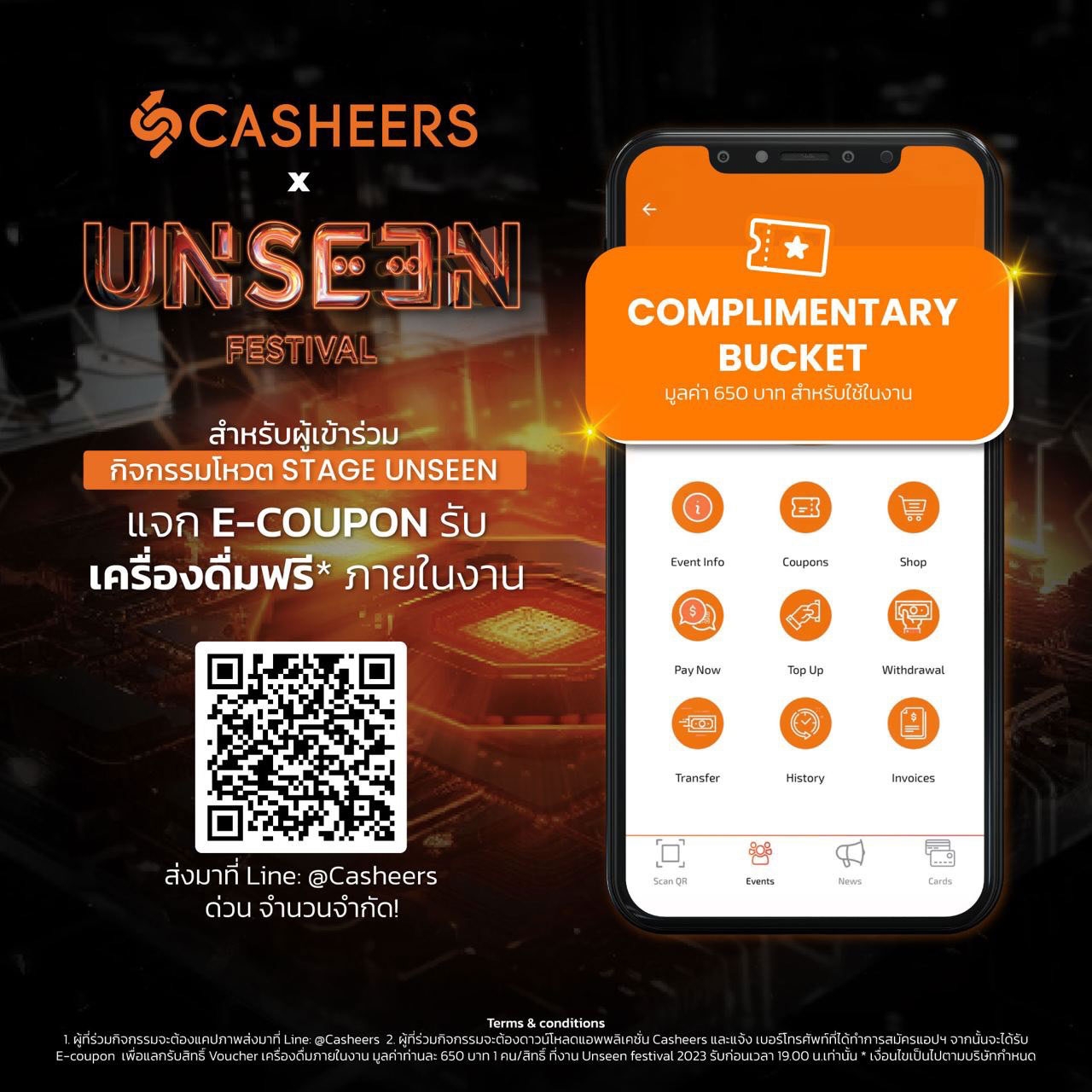 ยิ่งไปกว่านั้น… ผู้ที่เข้าร่วมงานทุกท่าน สามารถแคปเจอร์รูปโพสต์ที่ร่วมโหวต ส่งมาทาง LINE: @casheers จะได้รับ E-Coupon เพื่อแลกรับสิทธิ์ Voucher Complimentary Bucket มูลค่าท่านละ 650 บาท (มารับสิทธิ์ที่อีเวนต์ก่อนเวลา 19.00 น.) ได้อีกด้วย พลาดไม่ได้แล้วงานนี้!!