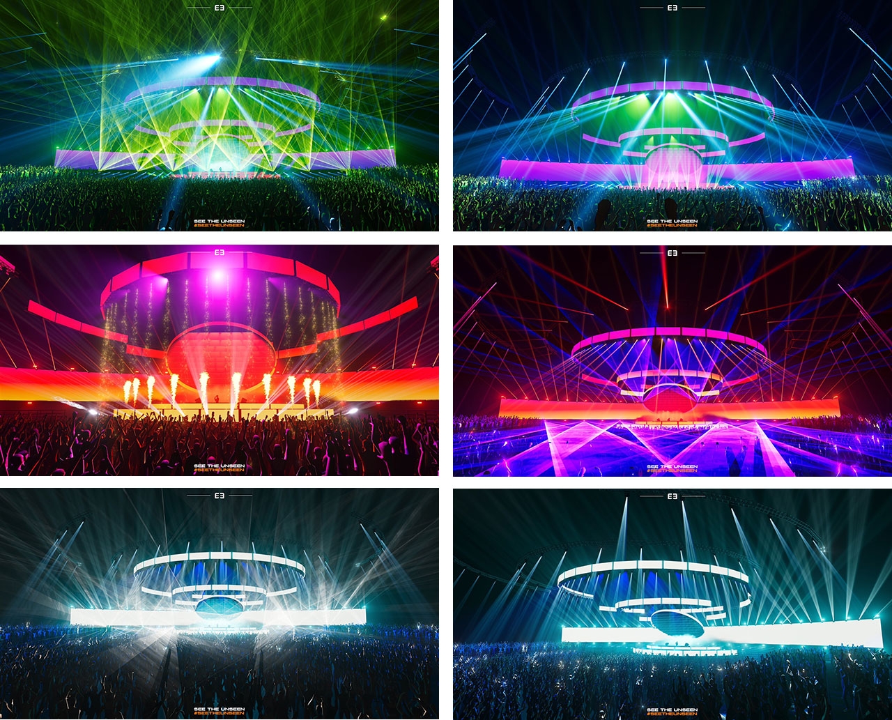 แผงพลังงานวงกลม โดยมีจอ LED เป็นเส้นคลื่นวงแหวนหมุนรอบเข้าหาแกนกลางทั้งบนและล่าง โดยสร้าง Gimmick วงกลมตรงกลางเป็นแผงพลังงานขนาดใหญ่ที่คอยแผ่คลื่นพลังงาน โดยการวางแนวไฟ Sweeper เป็นแผงแนวนอนเรียงติดกัน แทนการส่งพลังงานไปปะทะกับผู้ชม เมื่อได้วงกลมตรงกลาง ก็มาเพิ่มจอ LED โค้ง Panorama ที่ยาวซ้ายสุดของฮอลล์ถึงส่วนขวาสุดของฮอลล์ มารองหลังตรงกลาง เหมือนเป็นจอที่จะสื่อถึงสภาพแวดล้อมของแกนวงกลมในแต่ละครั้งที่ปล่อยคลื่นพลังงานออกมา และจัดวาง Laser ให้ติดไปกับแนวโค้งล่างของจอ เพื่อสร้างซีนเลเซอร์ไปปะทะกับผู้ชมได้ทุกมุมมอง