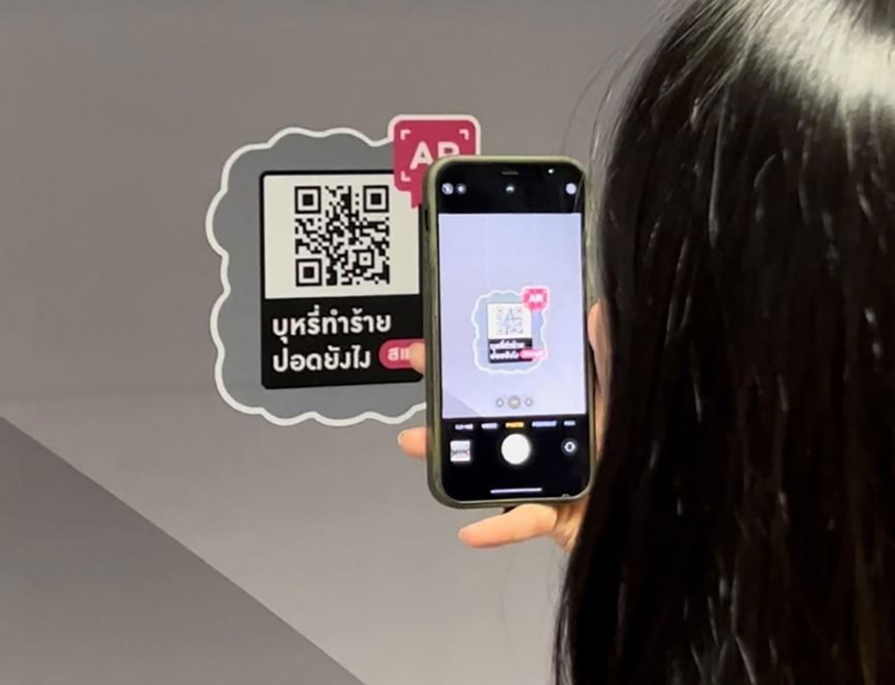 3. มองหาสัญลักษณ์ AR ที่รูปภาพ จากนั้นนำโทรศัพท์มือถือไปสแกนพื้นที่ที่ต้องการได้เลย