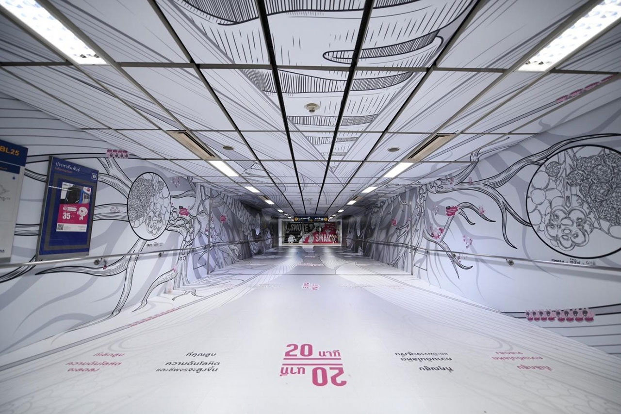 ณ สถานีรถไฟฟ้า MRT ลุมพีนี สำนักงานกองทุนสนับสนุนการสร้างเสริมสุขภาพ (สสส.) ร่วมกับ บริษัท ทางด่วนและรถไฟฟ้ากรุงเทพ จำกัด (มหาชน) (BEM) ผู้ให้บริการทางพิเศษและรถไฟฟ้า MRT สายสีน้ำเงินและสีม่วง บริษัท แบงคอก เมโทร เน็ทเวิร์คส์ จำกัด (BMN) ผู้ให้บริการสื่อโฆษณาและพื้นที่จัดกิจกรรมในระบบรถไฟฟ้า สื่อสารสุขต่อยอดโครงการ “MRT Healthy Station” ความร่วมมือนี้เป็นจุดที่ 5 ของความร่วมมือในการสร้างสังคมสุขภาวะ ด้วยการเปิดตัว “อุโมงค์ปอด” Lung Tunnel เพื่อกระตุ้นสังคมให้รับรู้ว่า แค่คุณหยุดสูบ ปอดฟื้นฟูได้ ลดเสี่ยงการเสียชีวิต ชวนผู้โดยสารที่ใช้บริการรถไฟฟ้า MRT เดินเข้าสู่สถานีลุมพินี เสมือนการเดินสู่อวัยวะปอด ผ่านระยะทางความยาวของอุโมงค์และพื้นที่สื่อ กว่า 100 เมตร ทั้งลายเส้นกราฟิกภาพภายในปอด พร้อมกับเทคโนโลยี AR ที่จะพาคุณไปรู้จักผลกระทบและตัวช่วยเลิกบุหรี่