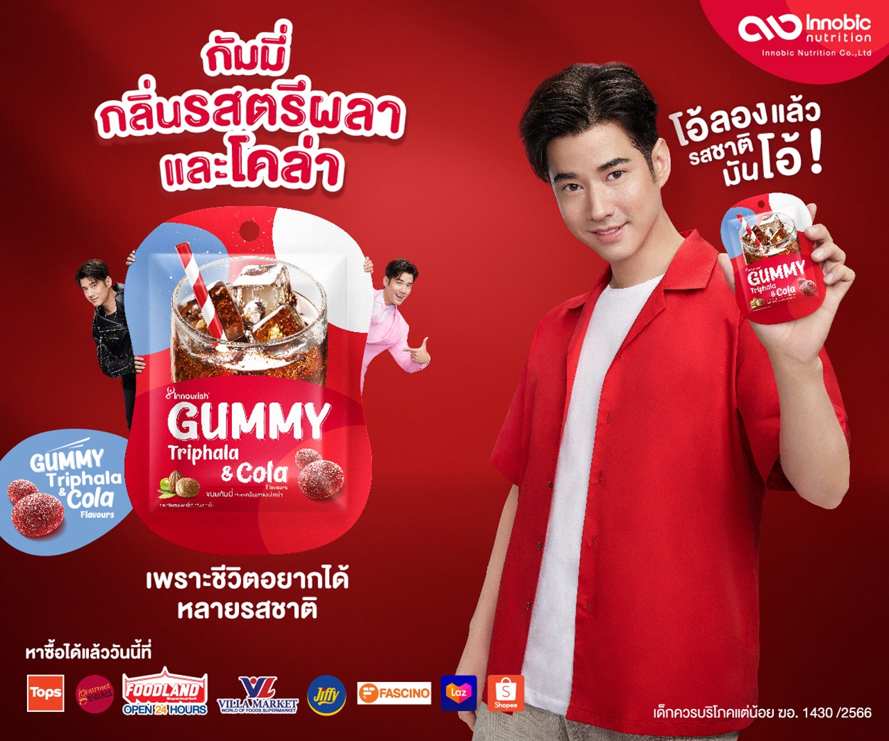 เมื่อเร็วๆ นี้ - บริษัท อินโนบิก นูทริชั่น จำกัด ในกลุ่ม บริษัท ปตท. จำกัด (มหาชน) ดำเนินธุรกิจโภชนาการเพื่อสุขภาพ ตอบโจทย์ความต้องการด้านโภชนาการของคนไทย เปิดตัวผลิตภัณฑ์ใหม่ “กัมมี่กลิ่นรสตรีผลาและโคล่า” แบรนด์อินนอริช (Innourish) ครั้งแรกของกลิ่นรสสมุนไพรตรีผลาในรูปแบบกัมมี่ ที่เคี้ยวสนุกครบรส ดึงจุดแข็งสมุนไพรไทย “ตรีผลา” ที่ช่วยต่อต้านอนุมูลอิสระ ปรับสมดุล ผสานความหอมของกัมมี่กลิ่นรสโคล่า อร่อย ทานง่าย ได้ประโยชน์ เดินหน้าเตรียมกลยุทธ์ รุกตลาดคนรุ่นใหม่ และวัยทำงาน ด้วยพรีเซ็นเตอร์หนุ่มอารมณ์ดี “มาริโอ้ เมาเร่อ” เจ้าของนิยาม “รสชาติมันโอ้”