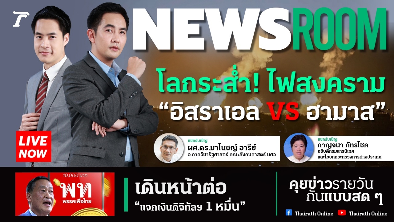 วันที่ 9 ต.ค. 2566 ใน "NewsRoom" รายการทอล์กคุยข่าวใหญ่ ทางไทยรัฐออนไลน์ ดำเนินรายการโดย คิงส์ พีระวัฒน์ อัฐนาค และกาย พงศ์เกษม สัตยาประเสริฐ วันนี้เป็นการพูดคุยกันในประเด็น ไฟสงคราม “อิสราเอล VS ฮามาส” คนไทยระส่ำ