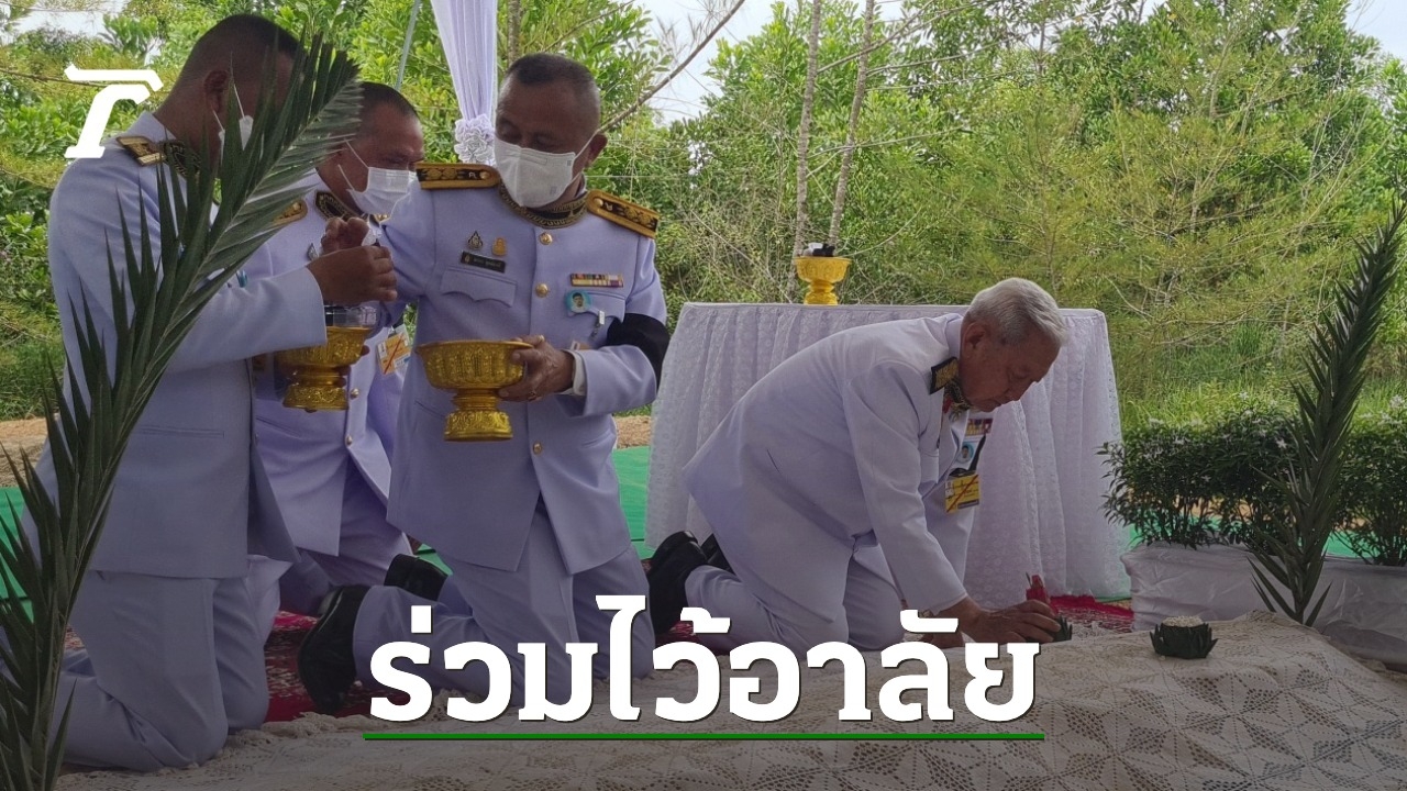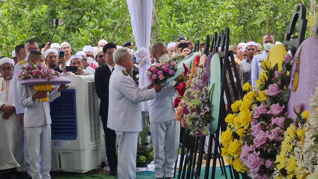 พล.อ.สุรยุทธ์ จุลานนท์ อัญเชิญ "ดินพระราชทาน" พร้อมพวงมาลาของพระบรมวงศานุวงศ์ วางหน้าหลุมศพ "นายอาศิส พิทักษ์คุมพล" จุฬาราชมนตรี เพื่อร่วมไว้อาลัย