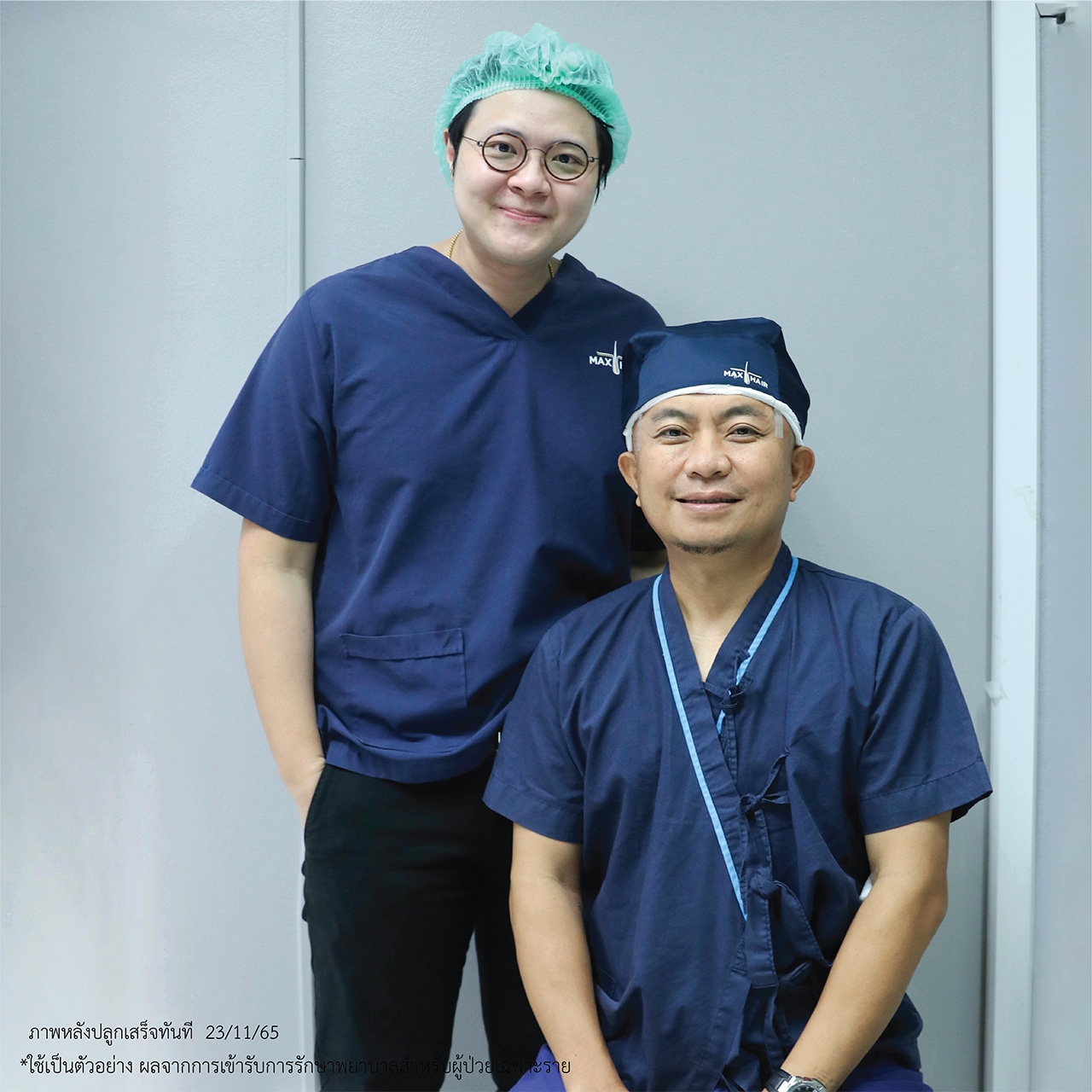 “การปลูกผมคุณอี๊ดครั้งนี้ถือว่าประสบความสำเร็จ และคนที่จะประเมินความสำเร็จได้ดีกว่าหมอก็คือคนไข้ครับ สุดท้ายถ้าคนไข้ Happy หมอก็ Happy ครับ”