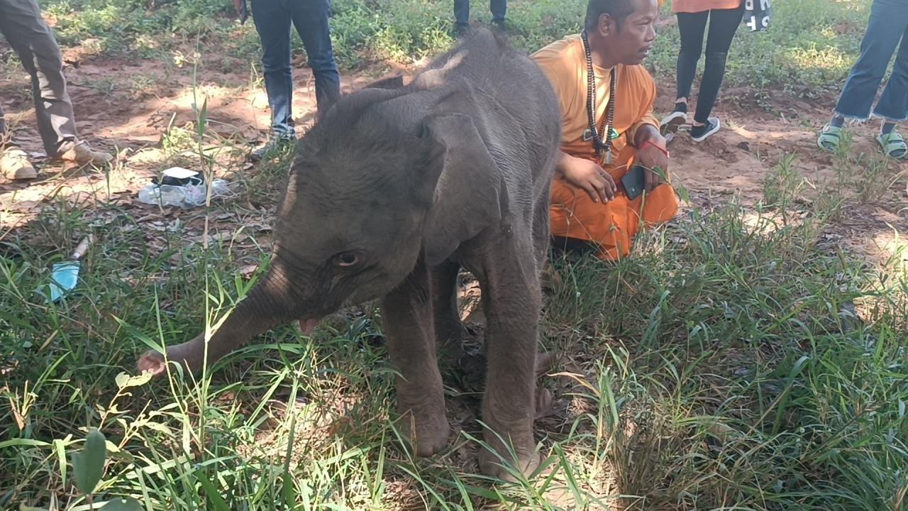 พบกับลูกช้างป่าแรกเกิด เพศผู้ สูง 90 เซนติเมตร วัดรอบอกได้ 100 เซนติเมตร ในสภาพค่อนข้างอิดโรย เดินโซเซอยู่ริมแนวเขตป่าติดกับไร่มันสำปะหลังของชาวบ้าน ห่างจากแหล่งชุมชนประมาณ 3 กิโลเมตร คาดว่าน่าจะพลัดหลงจากโขลงเมื่อคืนที่ผ่านมา เนื่องจากเมื่อคืนนี้ เกิดมีโขลงช้างป่าออกมาหากินผลผลิตทางการเกษตรของชาวบ้าน และมีการใช้เสียงผลักดันตลอดทั้งคืน ซึ่งอาจจะทำให้ช้างเกิดตกใจและหลงโขลงดังกล่าว และเนื่องจากช้างตัวดังกล่าวเป็นช้างแรกเกิดยิ่งทำให้พลัดหลงกับโขลงได้ง่ายขึ้นอีก