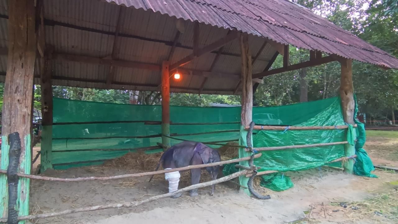 ทั้งนี้ ขาที่บาดเจ็บ ทีมสัตวแพทย์ใช้วิธีการพันขาหลังข้างขวา เพื่อซัพพอร์ตน้ำหนัก และกระดูกที่แตกหัก พบว่าสามารถเดินได้ดีขึ้น ยืนได้นานขึ้น อาการปวดลดลง แตกต่างจากวันอื่นๆ แต่ทั้งนี้พยายามไม่ให้ลูกช้างป่าเดินมากเกินไป เนื่องจากอาจเกิดการบวมอักเสบเพิ่มเติมได้