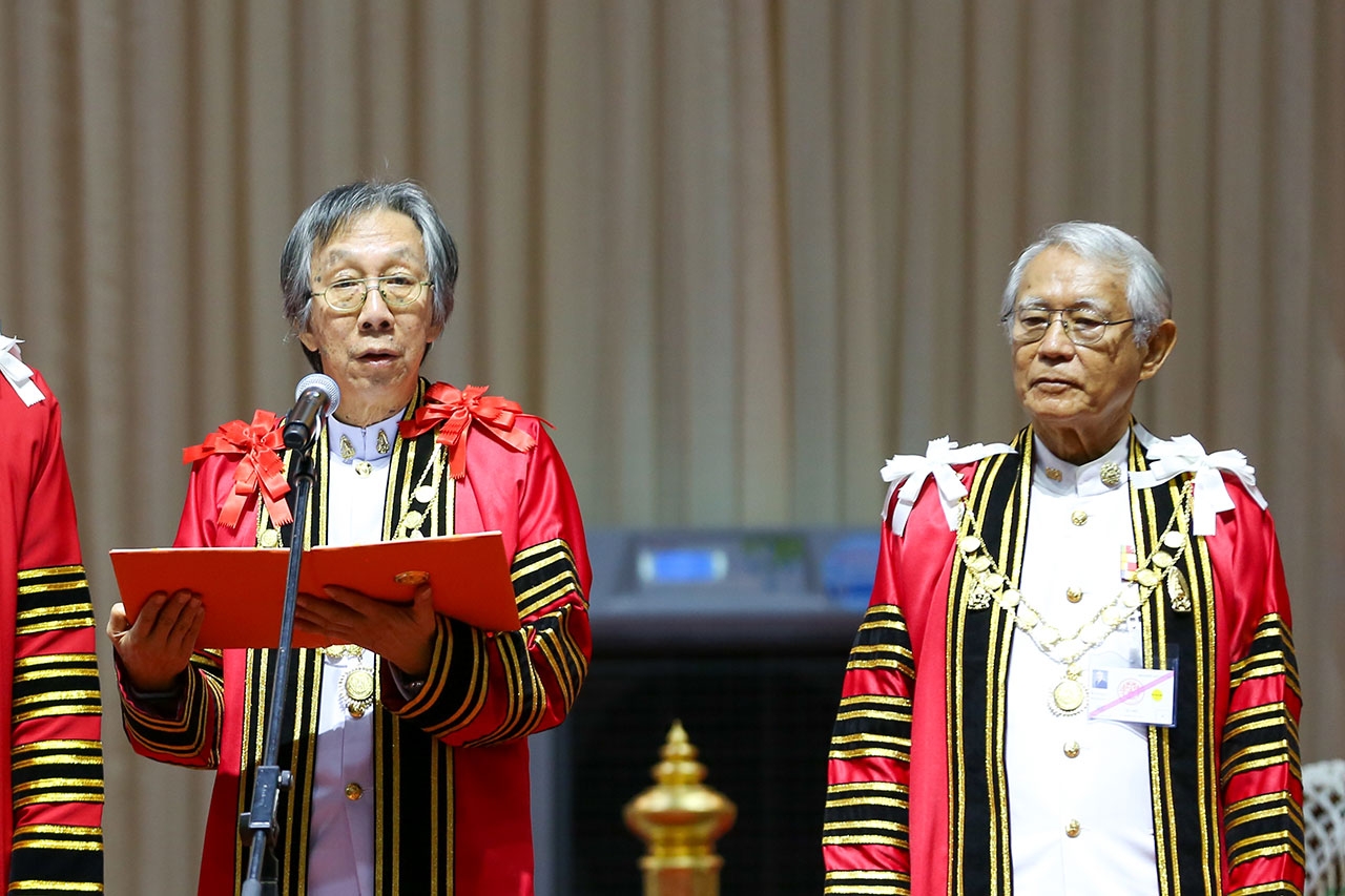 “ความสำเร็จที่บัณฑิตได้รับในวันนี้ มาจากปัจจัยสำคัญคือสติปัญญาความสามารถและความอุตสาหะพากเพียรในการศึกษาเล่าเรียนของแต่ละคน แต่เมื่อพิจารณาให้ถี่ถ้วนก็จะได้พบว่า การที่คนเราจะประสบความสำเร็จได้นั้น ย่อมต้องอาศัยความสนับสนุนเกื้อกูลจากบุคคลต่าง ๆ มากมาย เป็นต้นว่า บิดามารดาและครอบครัว ที่ได้อบรมเลี้ยงดูจนเติบใหญ่ ครูบาอาจารย์ที่ได้ถ่ายทอดความรู้และความดีให้ รวมทั้ง คนในสังคมที่ได้ช่วยเหลือเอื้อเฟื้อ โดยประการต่างๆ บุคคลเหล่านี้ เป็นผู้สมควรที่บัณฑิตจะได้ระลึกถึง ด้วยความซาบซึ้งในคุณความดีอยู่เสมอ พร้อมกันนั้น บัณฑิตก็ควรตั้งตัวตั้งใจให้มั่นคงที่จะประกอบคุณงามความดีเช่นเดียวกัน โดยประพฤติตนปฏิบัติงานให้เป็นไปในทางที่ดีที่ถูกต้อง เป็นประโยชน์เป็นความเจริญมั่นคง ทั้งแก่ตนเองและชาติบ้านเมือง หากปฏิบัติได้ดังนี้นอกจากจะเป็นการตอบแทนคุณความดีของบุคคลต่างๆ และของประเทศชาติอันเป็นที่เกิดที่อาศัยแล้ว ยังเป็นการสร้างสรรค์ความดีความเจริญให้แก่ชีวิตของแต่ละคนอย่างแท้จริงและยั่งยืนอีกด้วย”