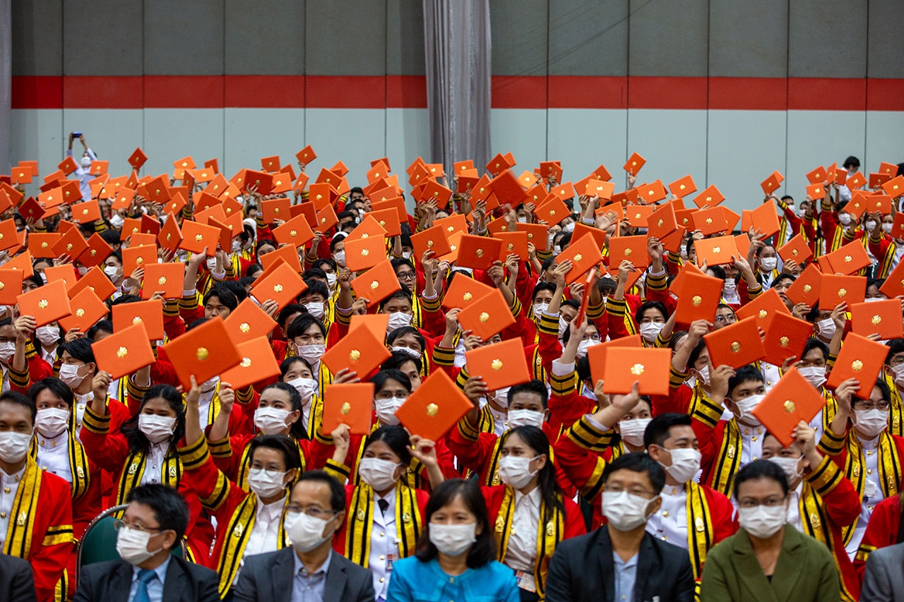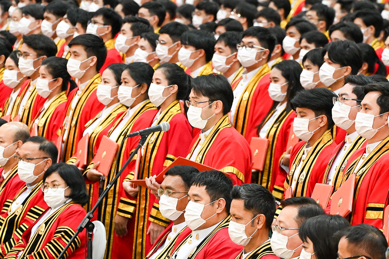 วันนี้ (วันที่ 16 พฤศจิกายน 2566) เวลา 10.12 น. พระบาทสมเด็จพระปรเมนทรรามาธิบดีศรีสินทรมหาวชิราลงกรณ พระวชิรเกล้าเจ้าอยู่หัว ทรงพระกรุณาโปรดเกล้าฯ ให้ พลเอก สุรยุทธ์ จุลานนท์ ประธานองคมนตรี ปฏิบัติพระราชกรณียกิจแทนพระองค์ ในพิธีพระราชทานปริญญาบัตรแก่ผู้สำเร็จการศึกษาจากมหาวิทยาลัยเทคโนโลยีพระจอมเกล้าธนบุรี (มจธ.) ประจำปีการศึกษา 2565 ณ ศูนย์นิทรรศการและการประชุมไบเทค เขตบางนา กรุงเทพฯ