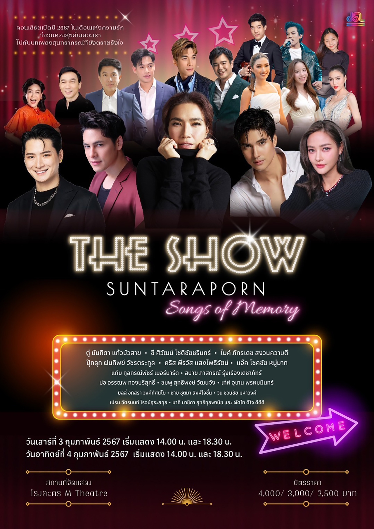 พร้อมใจร่วมถ่ายทอดบทเพลงไพเราะกันอย่างคับคั่ง อาทิ “ตู่-นันทิดา แก้วบัวสาย ซี-ศิวัฒน์ โชติชัยชรินทร์ ไมค์-ภัทรเดช สงวนความดี ปุ๊กลุก-ฝนทิพย์ วัชรตระกูล คริส-พีรวัส แสงโพธิรัตน์ แอ๊ค-โชคชัย หมู่มาก สปาย-ภาสกรณ์ รุ่งเรืองเดชาภัทร์ ปอ-อรรณพ ทองบริสุทธิ์ ชมพู-สุทธิพงษ์ วัฒนจัง เท่ห์-อุเทน พรหมมินทร์ ผัดไท-ดีใจ ดีดีดี แก้ม-กุลกรณ์พัชร์ เมอร์นาร์ด มิลลี่-อภิสรา วงศ์ทัศนีโย ฮาย-ชุติมา สิงห์ใจชื่น วิน-ชวนชัย มหาวงศ์ มากิ-มาชิดา สุทธิกุลพานิช เปรม-ฉัตรนนท์ โรจน์สุระสกุล” งานนี้พร้อมชวนแฟนเพลงมาร่วมย้อนรำลึกถึงบทเพลงแห่งความทรงจำที่ประทับใจไปกับการร้องเพลง เล่นดนตรี เต้นรำไปด้วยกัน ในวันที่ 3-4 กุมภาพันธ์ 2567 รอบ 14.00 น. และ 18.30 น. ณ โรงละคร เอ็ม เธียเตอร์ บัตรราคา 4,000 / 3,000 / 2,500 บาท ซื้อบัตรได้แล้ววันนี้ ที่ ไทยทิคเก็ตเมเจอร์ทุกสาขา https://m.thaiticketmajor.com/concert/the-show-suntaraporn-songs-of-memory.html ติดตามรายละเอียดเเละความเคลื่อนไหวได้ที่ Facebook : JSLGlobalMedia / Youtube : jslglobalmedia / TikTok : JohjaiOfficial