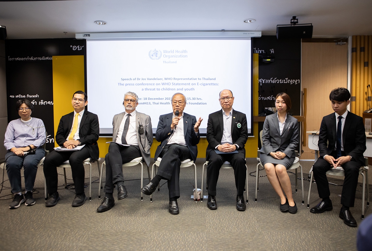 นพ.จอส ฟอนเดลาร์ (Dr. Jos Vandelar) ผู้แทนองค์การอนามัยโลกประจำประเทศไทย กล่าวทิ้งท้ายว่า องค์การอนามัยโลกสนับสนุนรัฐบาลไทยให้มีกฎหมายเรื่องการห้ามขายบุหรี่ไฟฟ้าต่อไป รวมถึงขอให้รัฐบาลไทยบังคับใช้กฎหมายอย่างเข้มงวด เพื่อปกป้องคนรุ่นใหม่จากผลิตภัณฑ์ที่อันตรายเหล่านี้ เนื่องจากบุหรี่ไฟฟ้าถือเป็นสิ่งเสพติด เป็นอันตราย ไม่ปลอดภัยต่อสุขภาพของผู้สูบและผู้ที่ได้รับควันบุหรี่มือสอง ทั้งนี้เพื่อร่วมกันหยุดยั้งปัญหาสุขภาพครั้งใหญ่ในอนาคตนั่นเอง